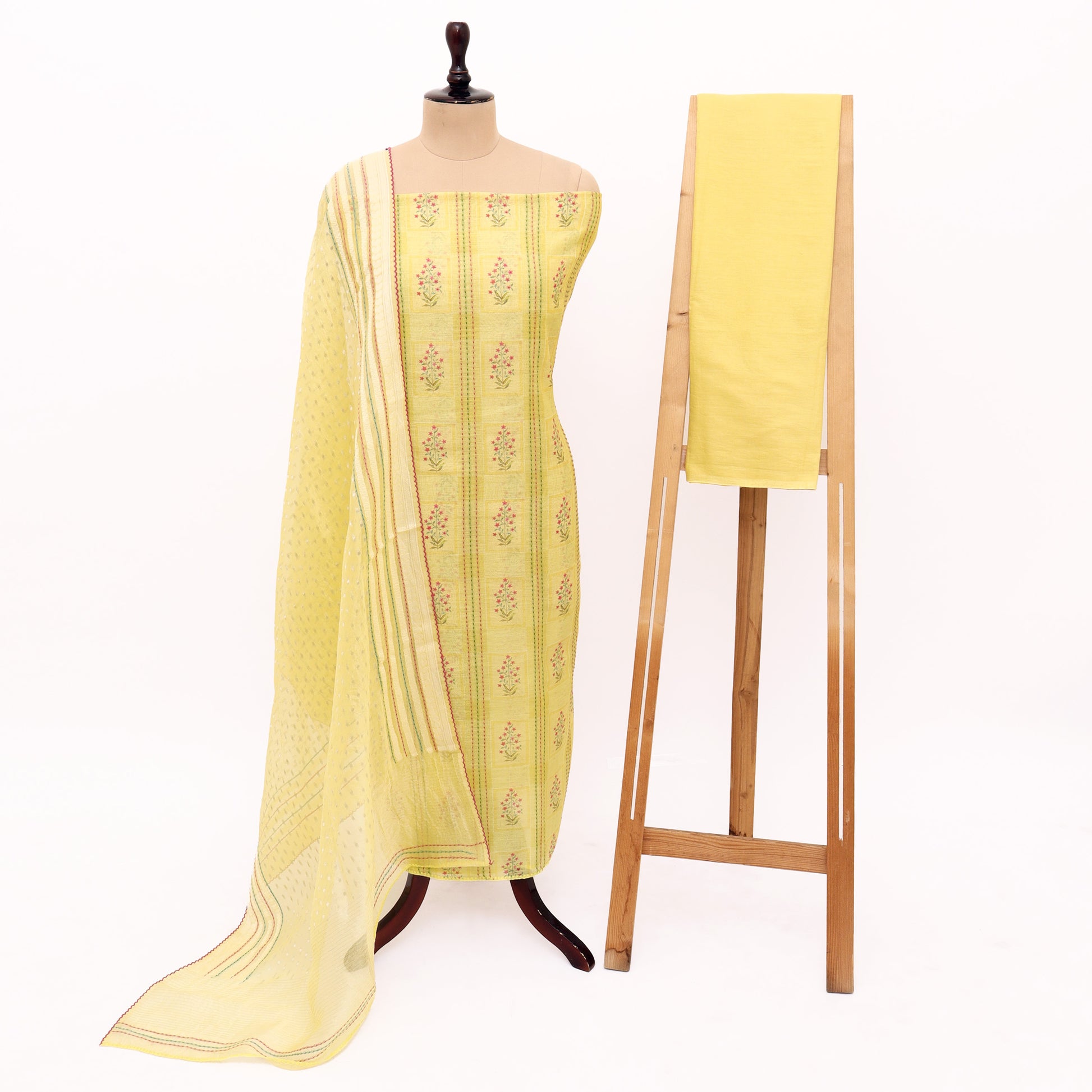 Unstitched Chanderi Suit Set