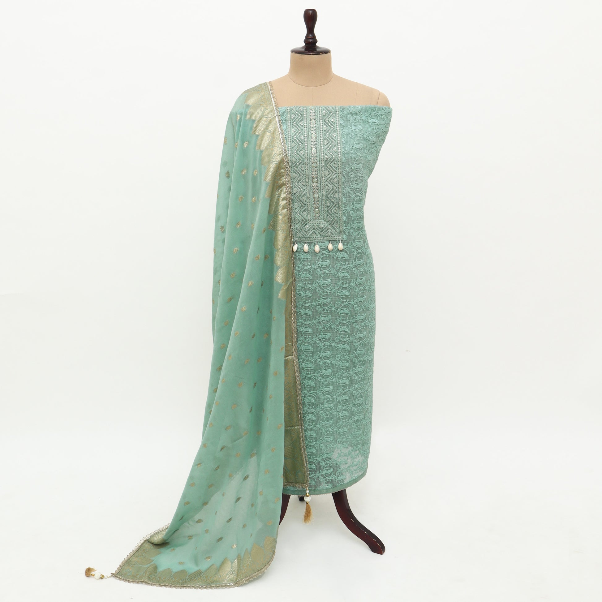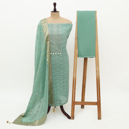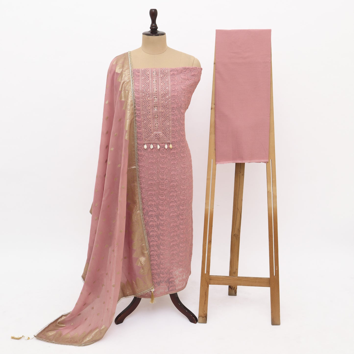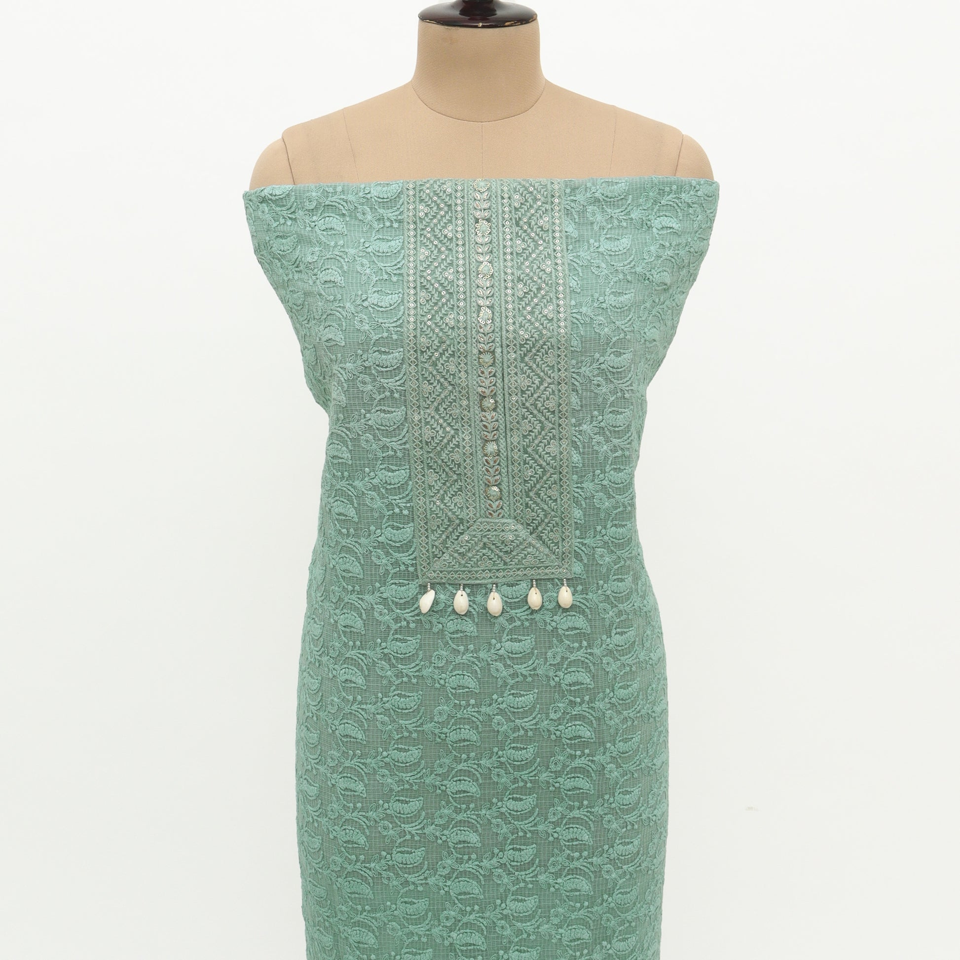 Experience the elegance of our Unstitched Kota Suit Set, featuring finely woven Kota fabric for a lightweight and breathable feel. This set includes fabric for the top, bottom, and a matching dupatta, allowing you to customize your outfit to your preferred style and fit. Ideal for warm weather, the breathable texture ensures comfort while maintaining a sophisticated look. Perfect for those who appreciate traditional craftsmanship combined with versatile styling options.