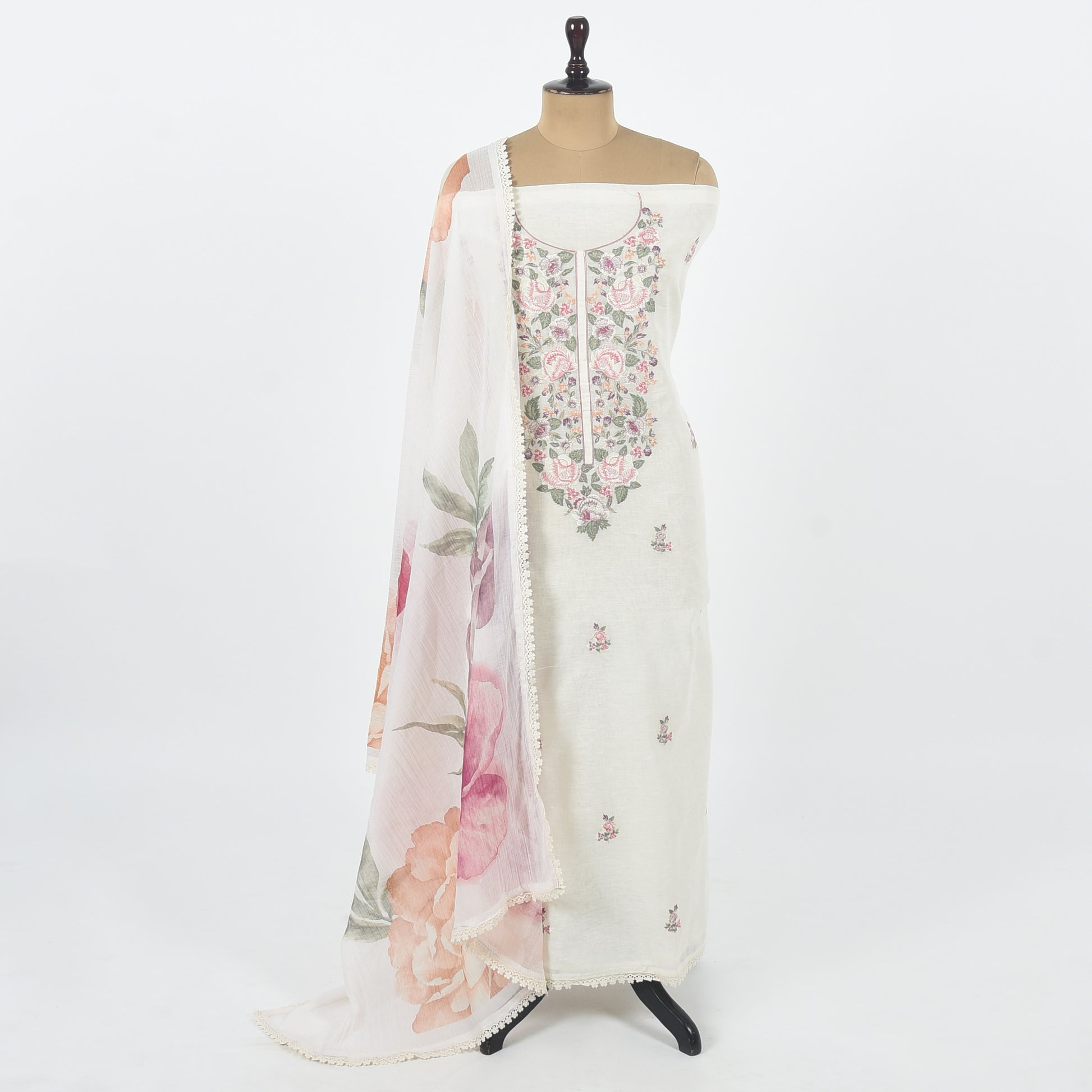 This unstitched linen suit set includes a top, bottom, and dupatta, providing a complete outfit for any occasion. Made with light and breathable linen, this set offers comfort and style. Perfect for both formal and casual events, this versatile set is a must-have in any wardrobe.
