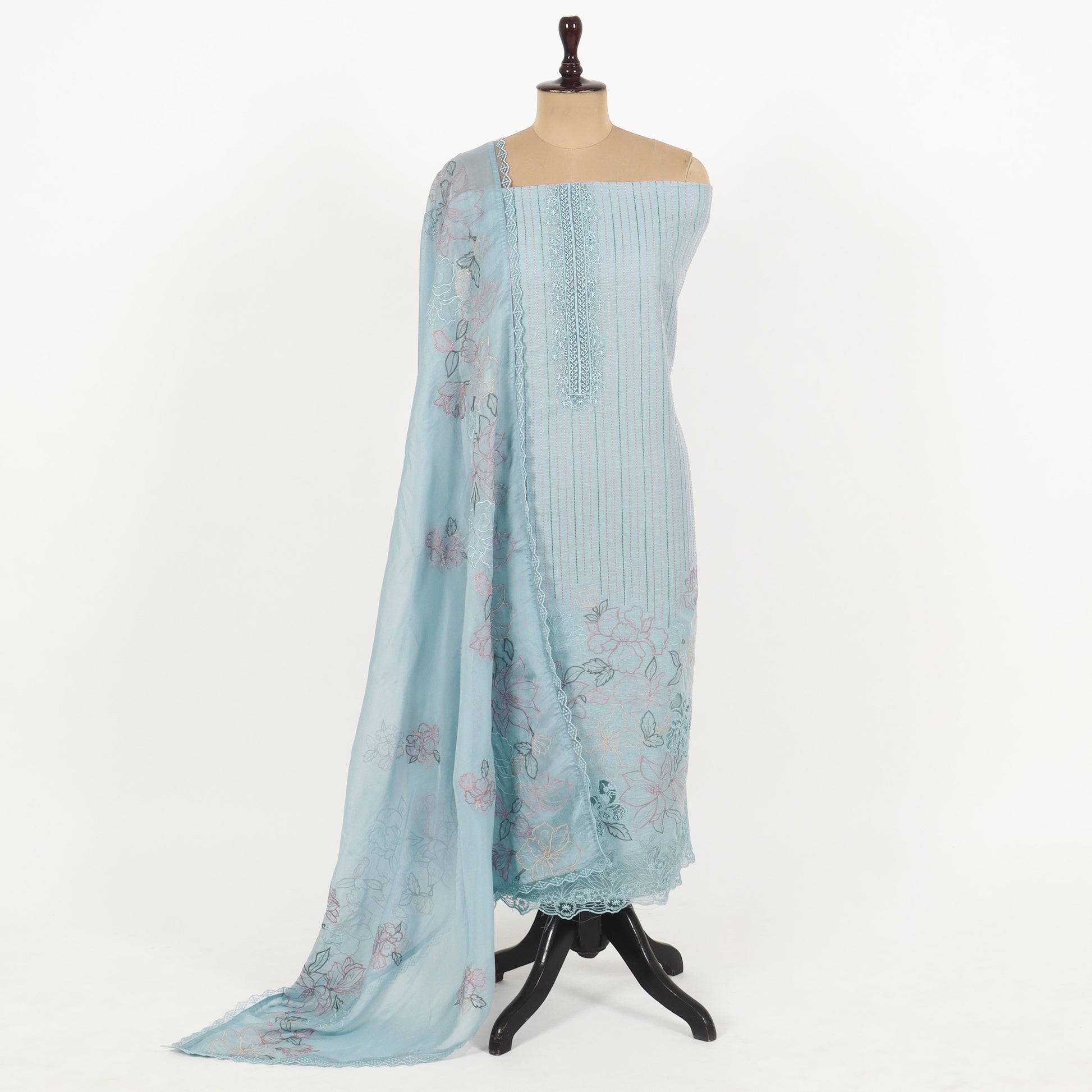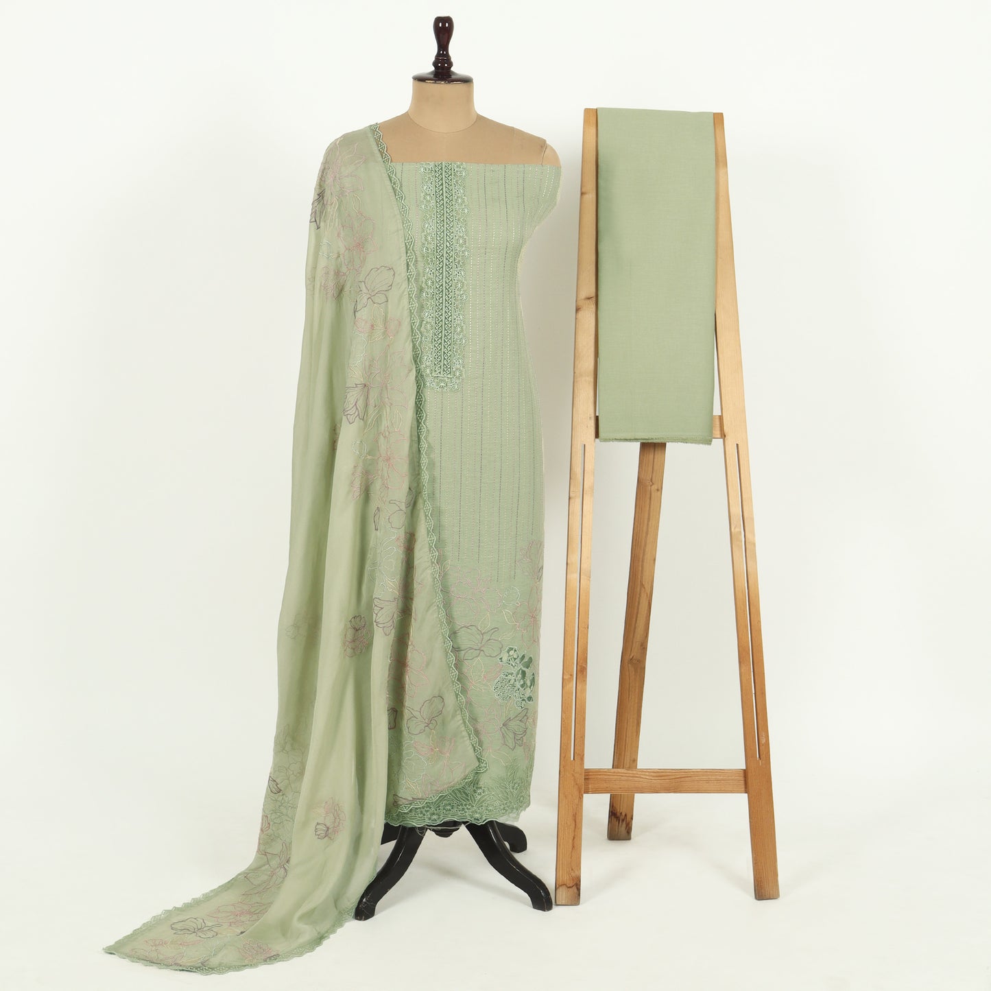 Elevate your wardrobe with our Unstitched Linen Suit Set. Handmade from Chanderi fabric, this set includes a top, bottom, and dupatta for ultimate customization. Impeccable craftsmanship and luxurious materials make this set a must-have for any fashion-forward individual.