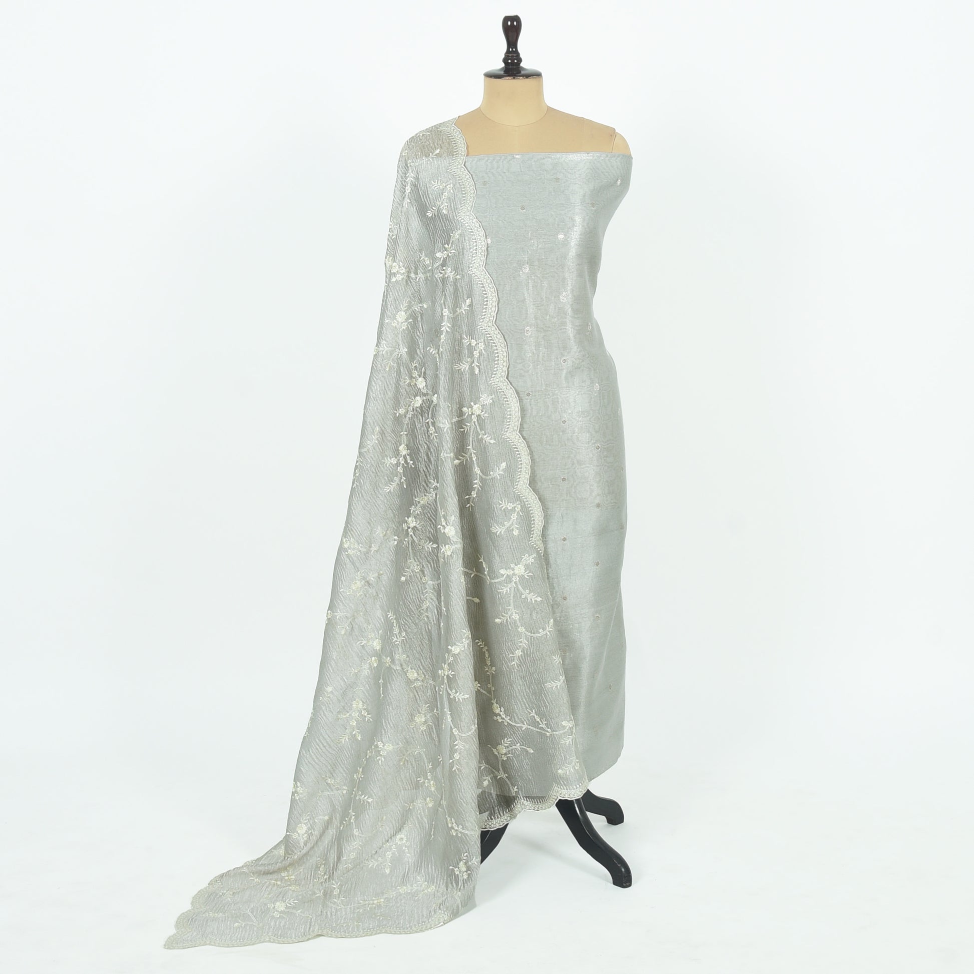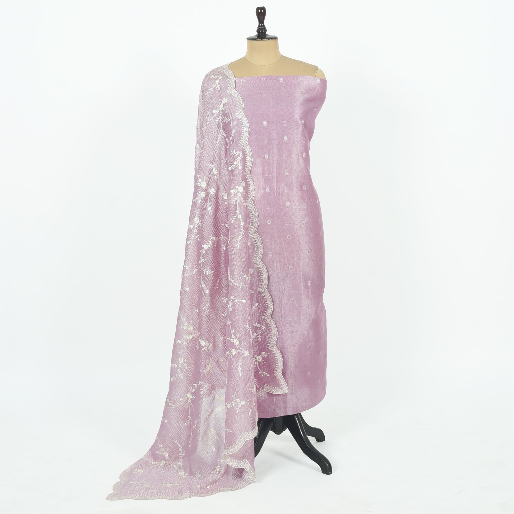 This exquisite unstitched tissue suit set includes a complete ensemble of top, bottom, and dupatta pieces. Crafted from premium tissue fabric renowned for its delicate texture and subtle luster, this set allows for custom tailoring to your precise measurements. The lightweight material drapes elegantly while the coordinated pieces ensure a cohesive, sophisticated look. Perfect for creating a bespoke outfit for special occasions or traditional celebrations.