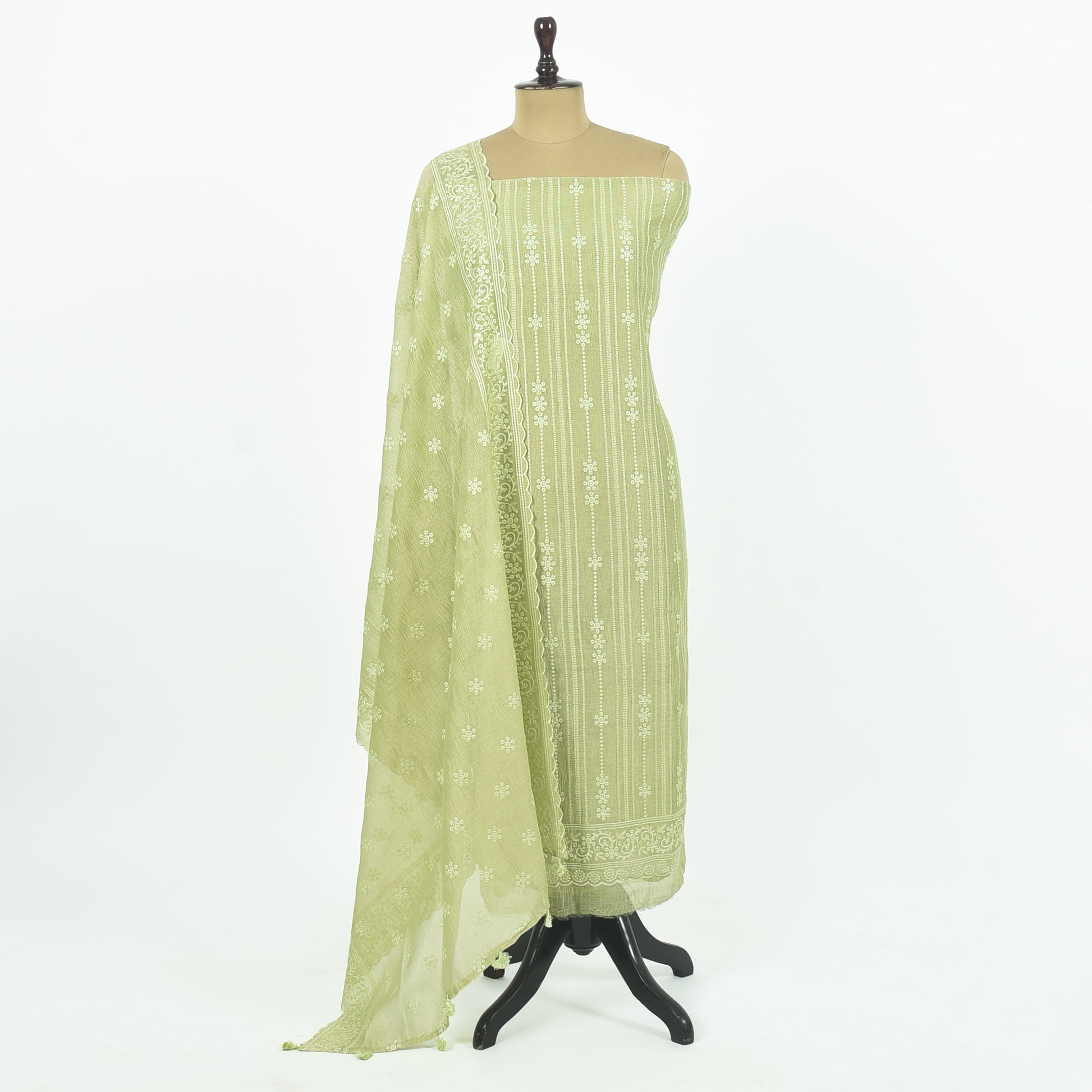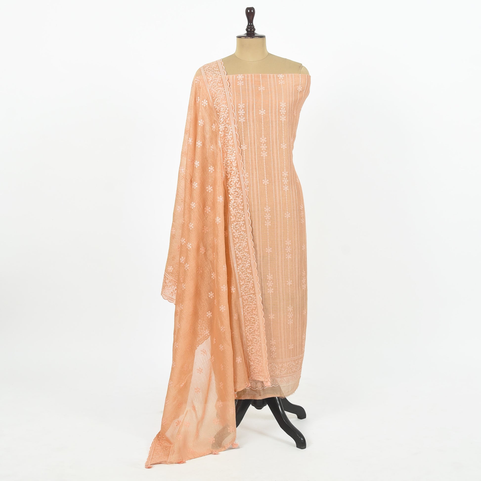 This premium unstitched tissue suit set includes top, bottom, and dupatta pieces, allowing for complete customization. The luxurious tissue fabric offers a distinctive sheen and lightweight feel while maintaining structural integrity. Ideal for creating bespoke ethnic wear that perfectly accommodates your measurements and style preferences, ensuring both comfort and sophistication for special occasions.
