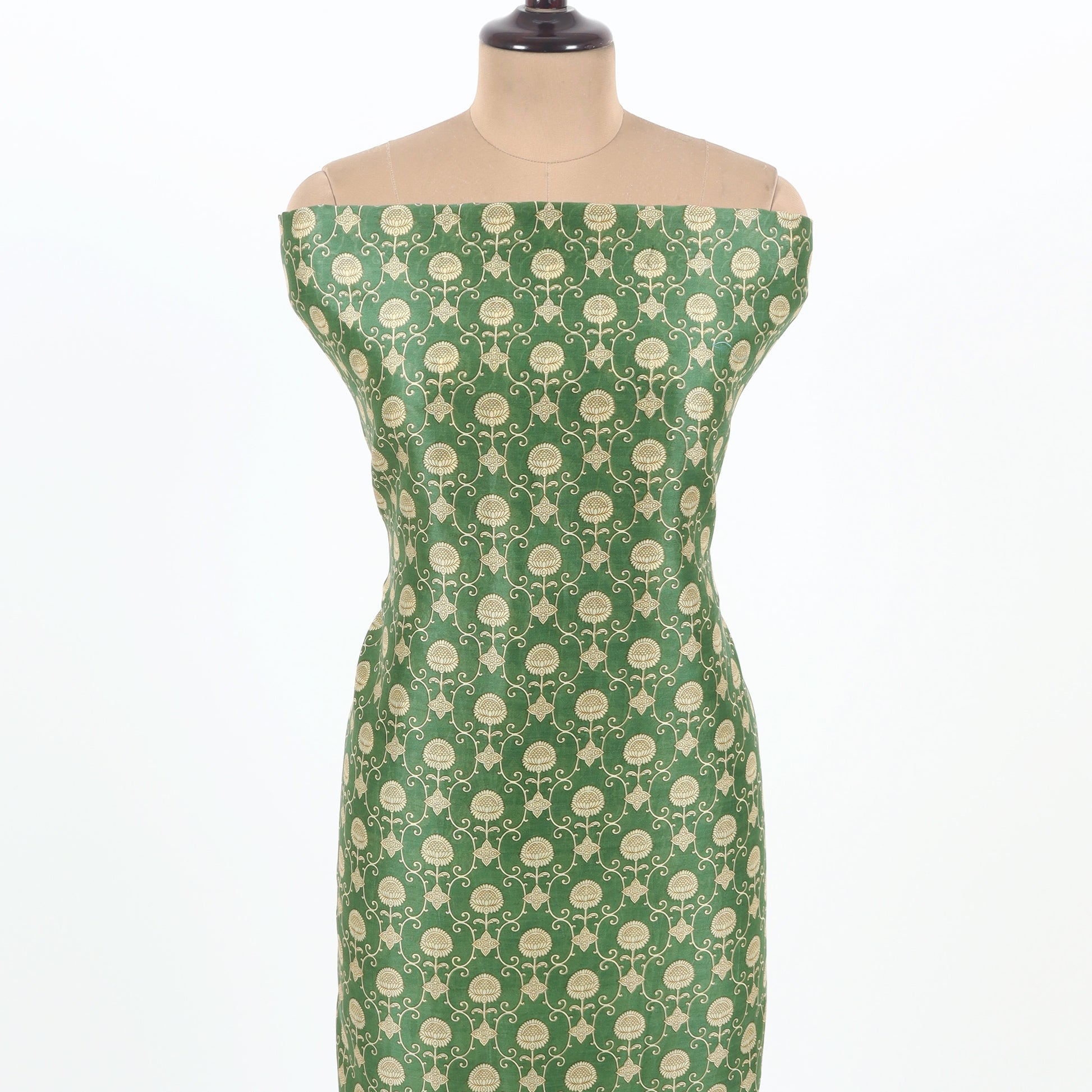 This complete unstitched Tussar suit set includes fabric for the top, bottom, and dupatta, allowing for customized tailoring to your precise measurements. Crafted from authentic Tussar silk renowned for its distinctive natural slubs and textural depth. The fabric exhibits exceptional breathability, durability, and a sophisticated matte finish that elevates both casual and formal occasions. Each component features the characteristic earthy elegance that makes Tussar silk a prized choice among connoisseurs of traditional textiles.