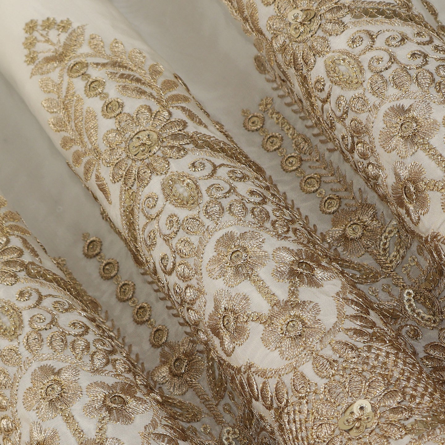 This white color crepe embroidery fabric is a versatile and elegant choice for any project. Made of high-quality crepe material, it is soft to the touch and drapes beautifully. The intricate embroidery adds a touch of sophistication, making it perfect for dresses, blouses, and more. Upgrade your wardrobe with this luxurious fabric.