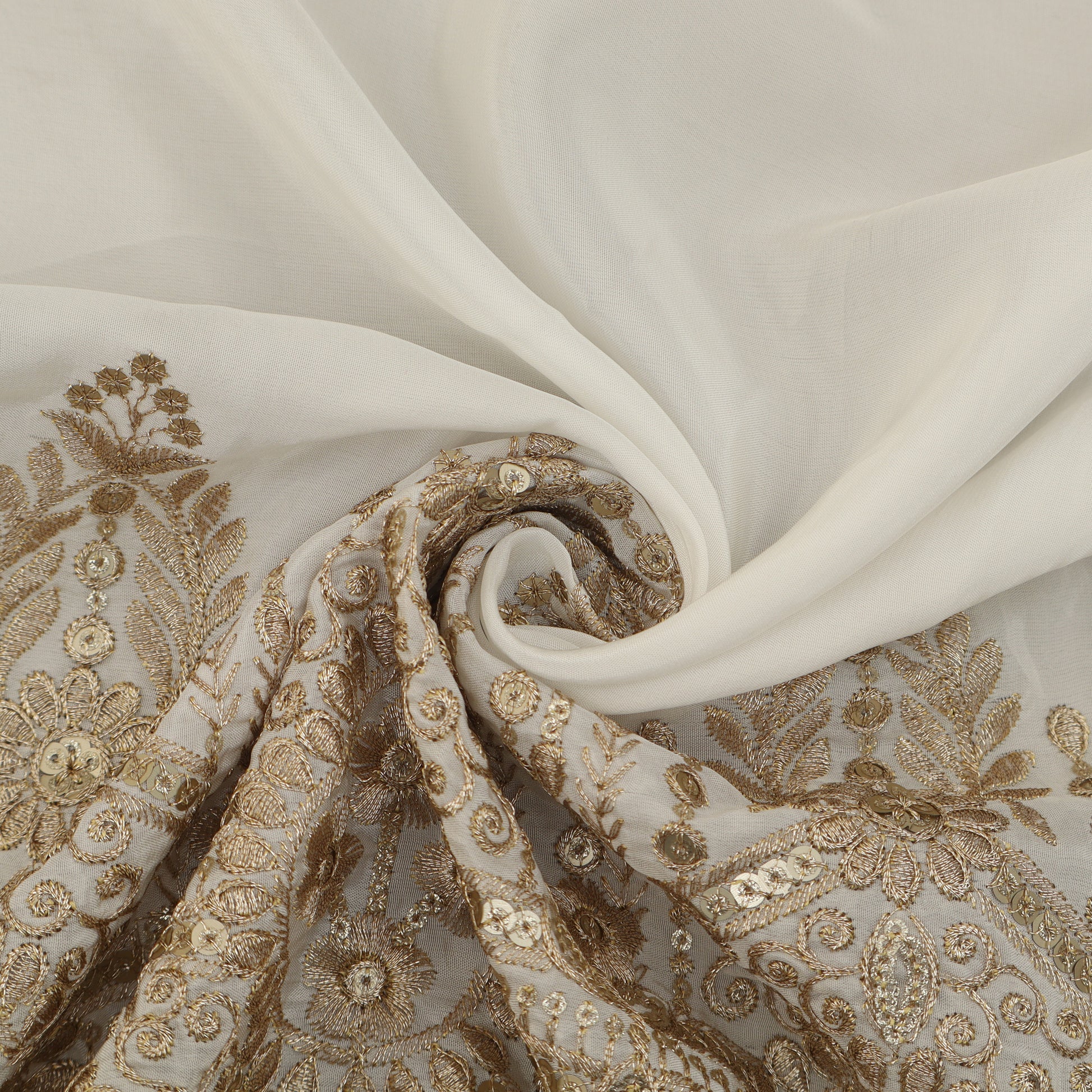 White Color Crepe Embroidery Fabric
