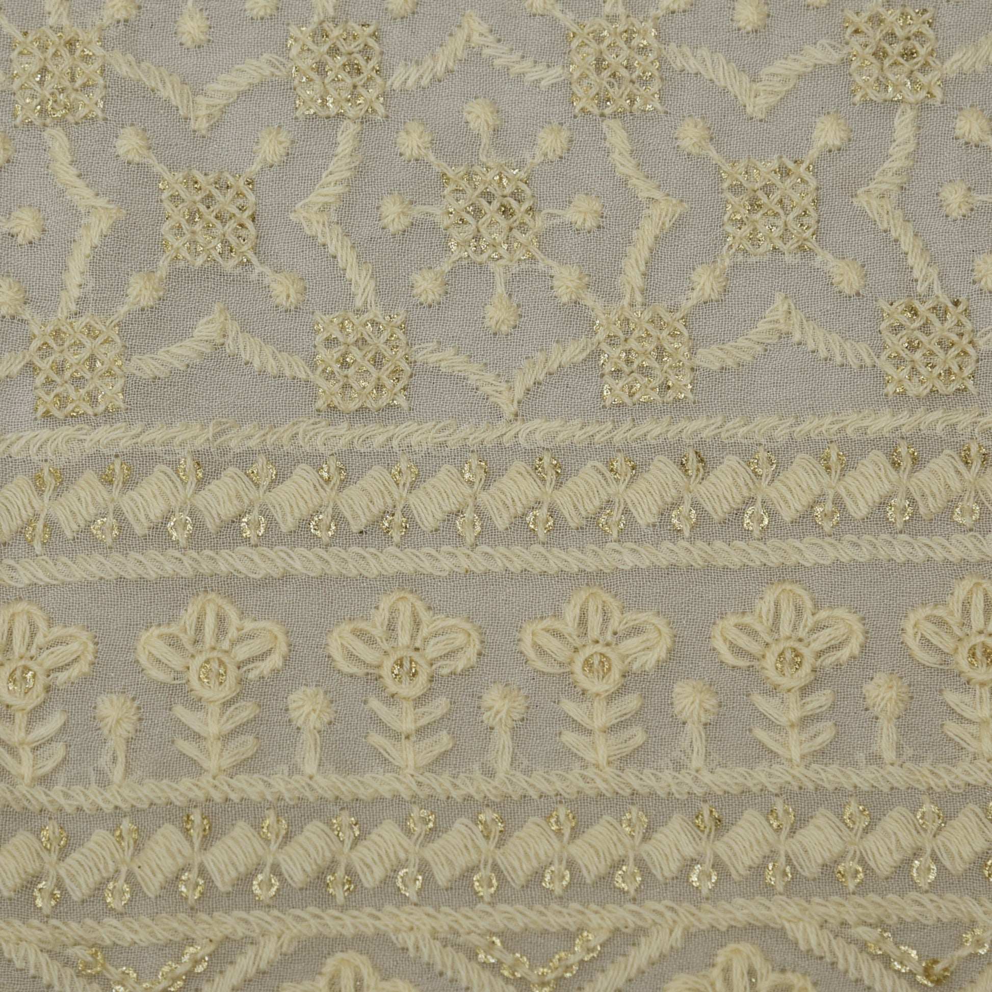 Expertly crafted from soft georgette fabric, this white color fabric features intricate embroidery for a touch of elegance. Lightweight and versatile, it is perfect for creating stunning layered looks. Enjoy the luxurious feel and effortlessly stylish appearance of this high-quality fabric.