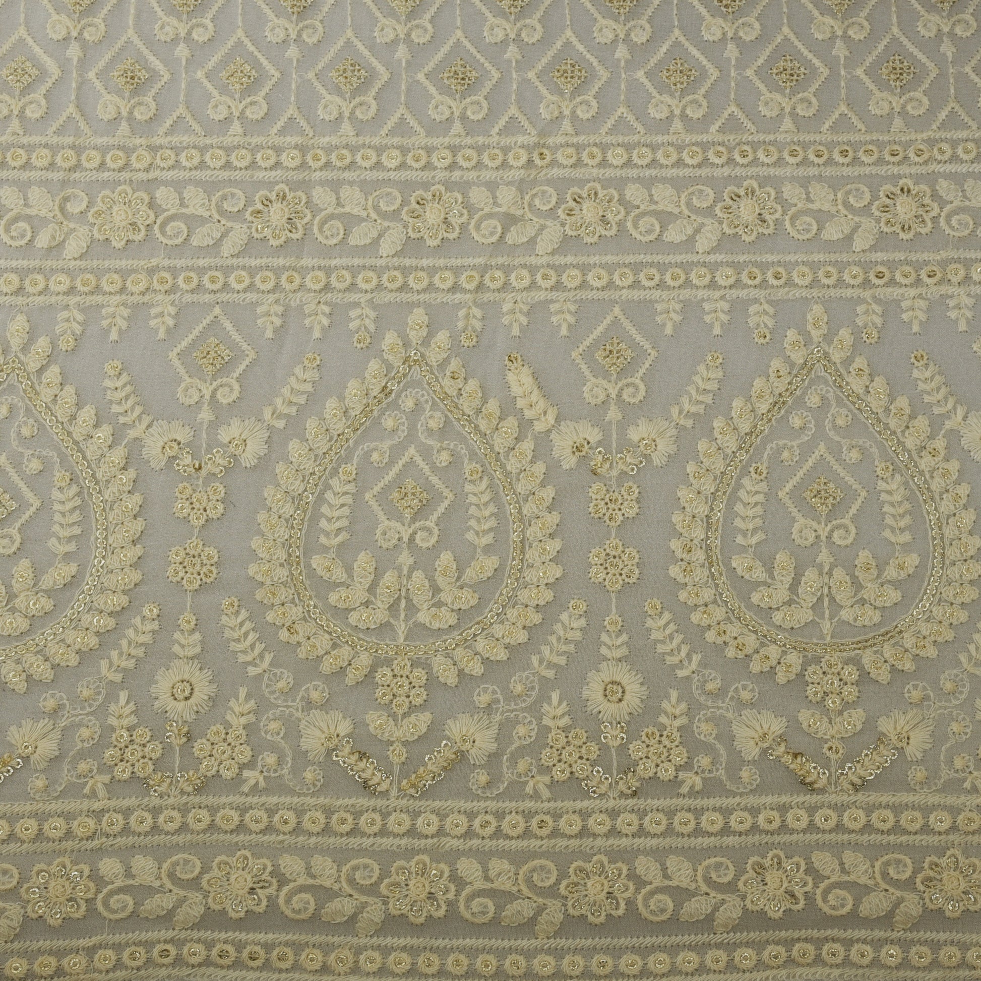 White Color Georgette Embroidery Fabric