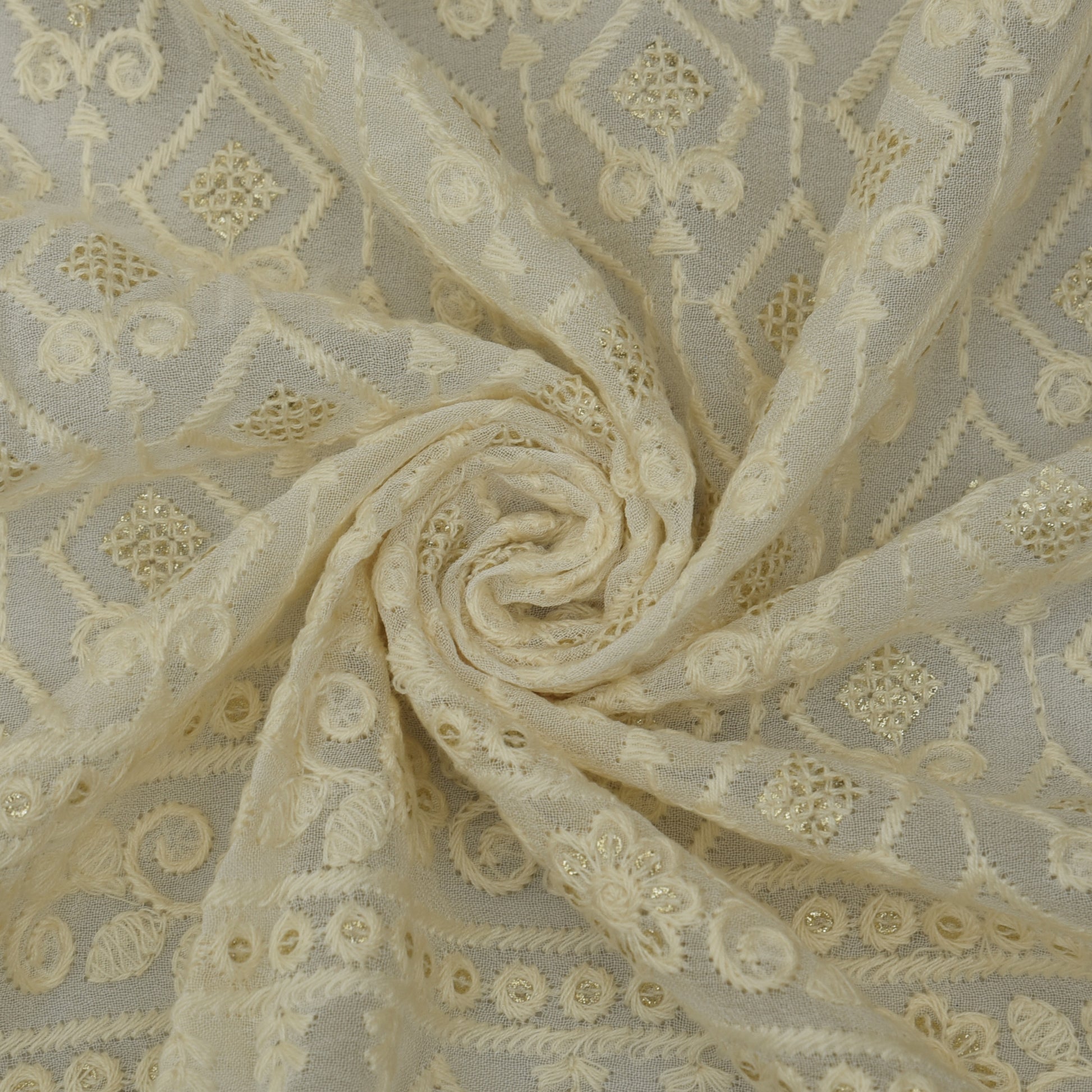 This georgette fabric features delicate embroidery in a pristine white color. Its lightweight and airy texture makes it perfect for creating elegant and sophisticated clothing or home decor pieces. With its timeless appeal and versatile nature, this fabric offers endless possibilities for your creative projects.