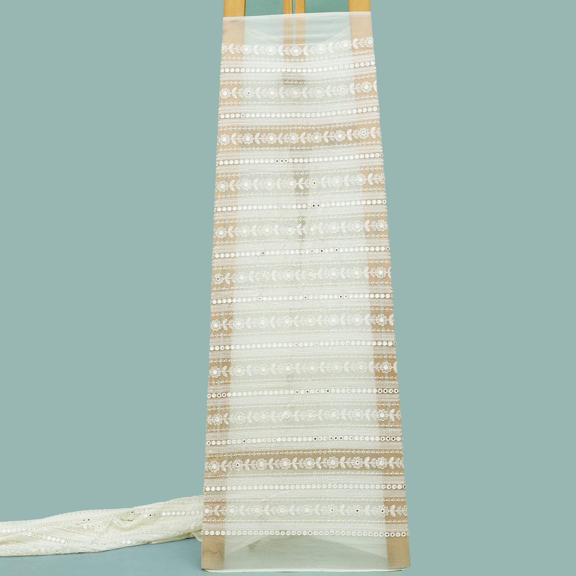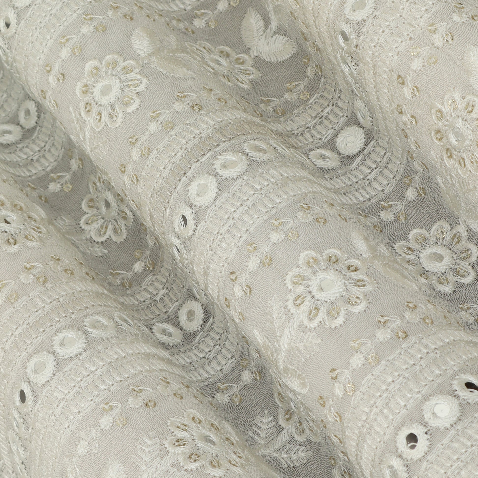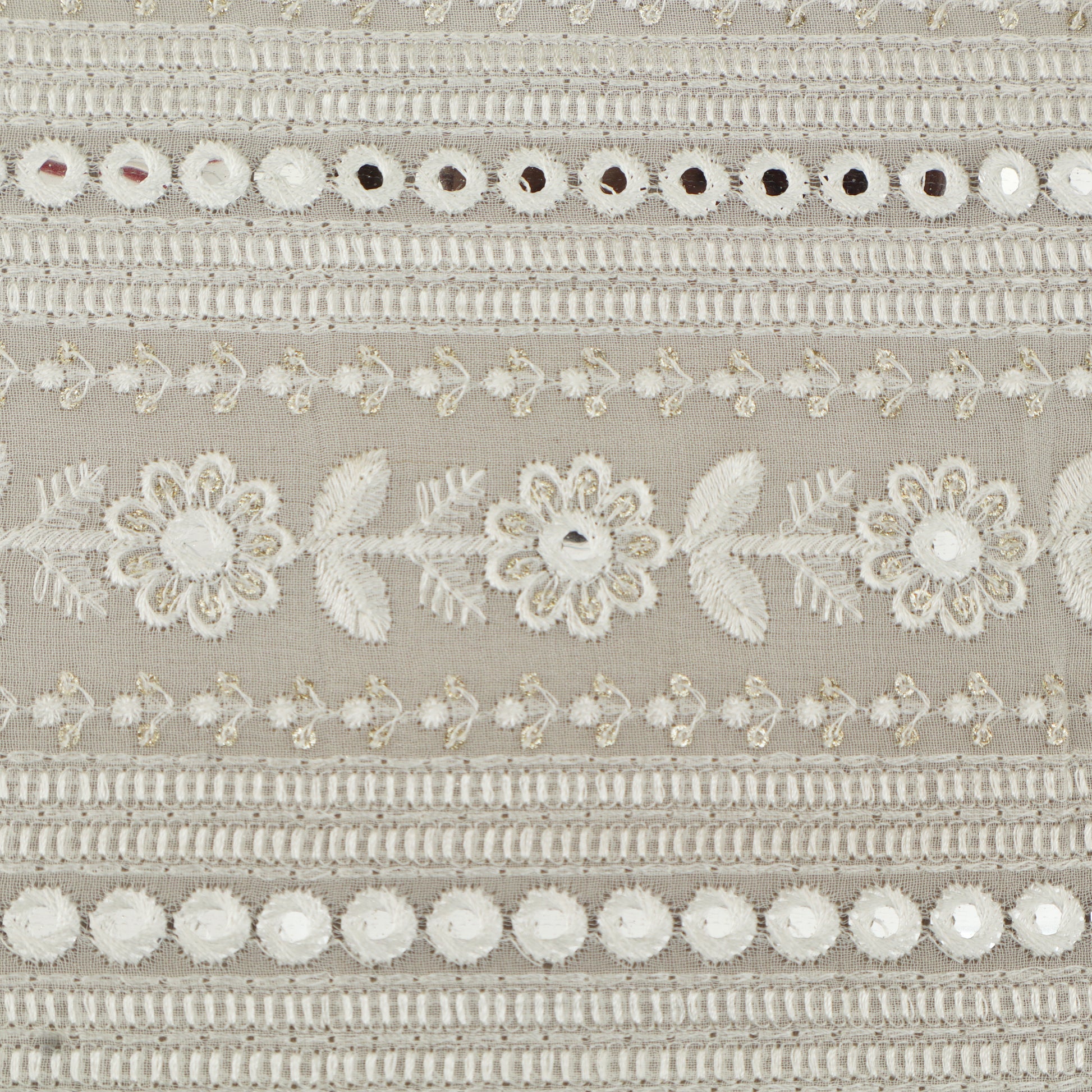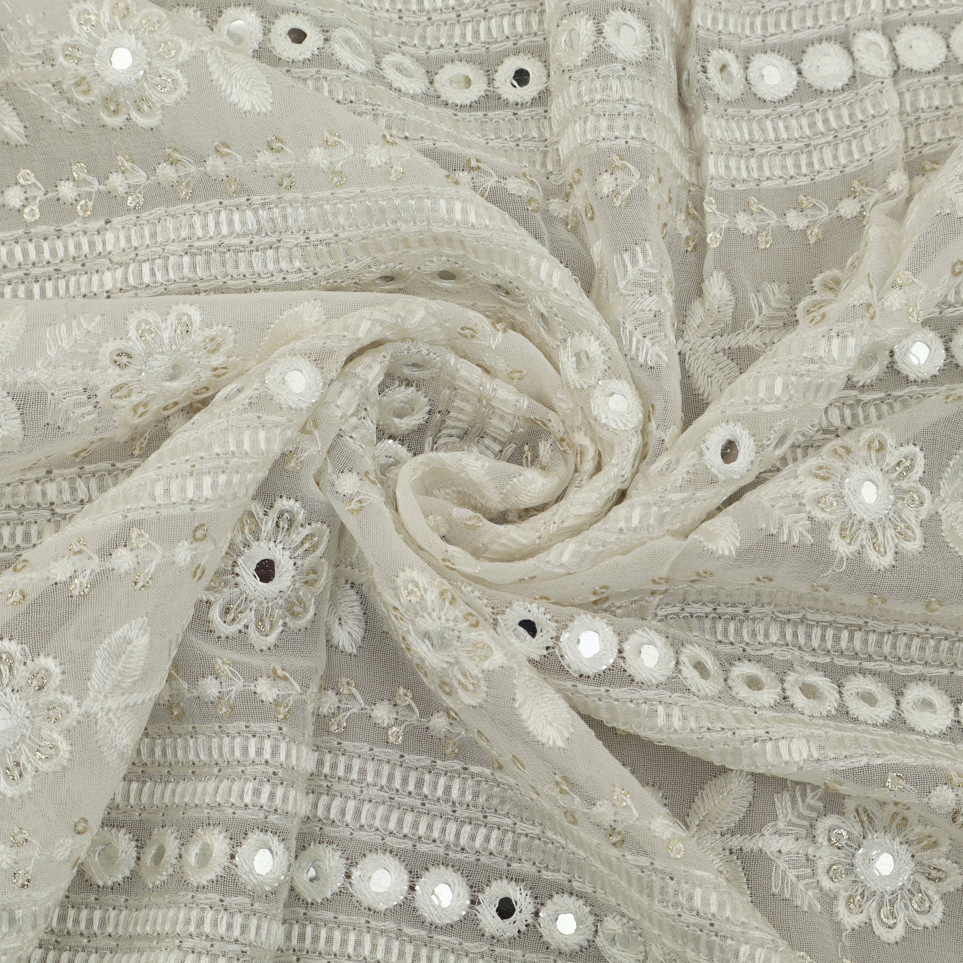 Enhance your wardrobe with our elegant White Color Georgette Embroidery Fabric. Made from high-quality georgette, this fabric features delicate embroidery in a crisp white color. Perfect for creating stylish and sophisticated outfits, this fabric is lightweight and breathable for comfortable wear. Elevate your fashion game with our exquisite Georgette Embroidery Fabric.
