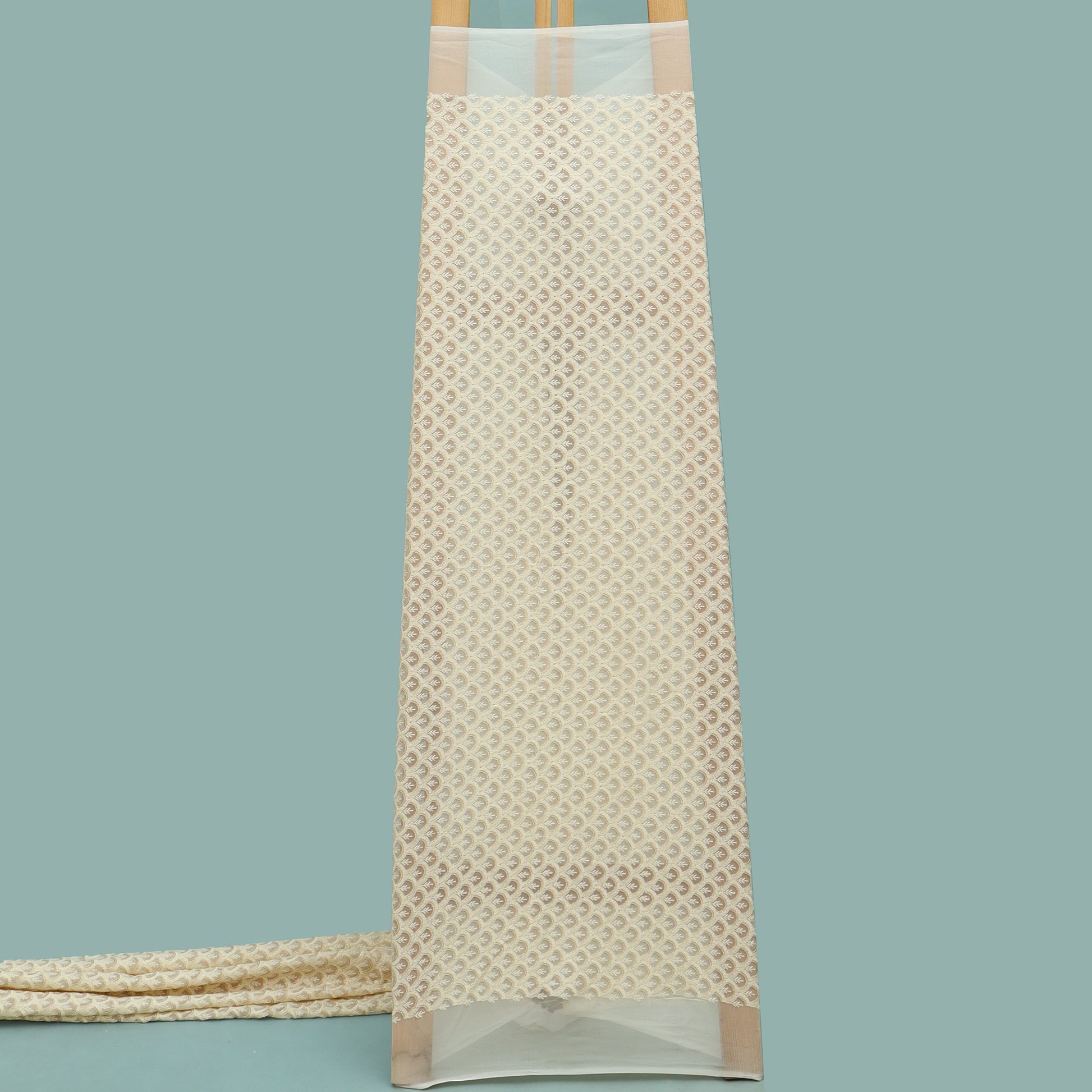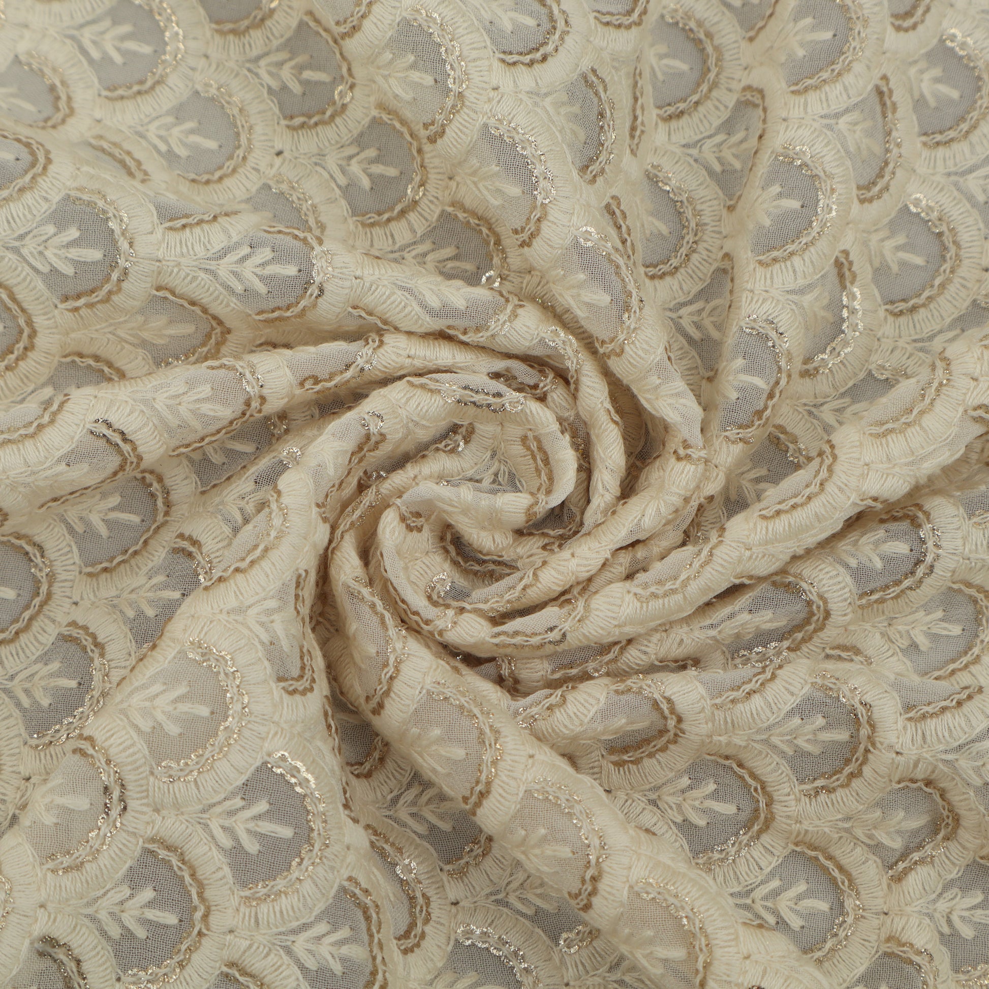 Crafted from high-quality georgette material, this white color embroidery fabric exudes elegance and sophistication. With its intricate embroidery, it adds a touch of luxury to any project. Soft to the touch and lightweight, this fabric is perfect for creating stunning garments and accessories. Elevate your designs with this beautiful fabric.