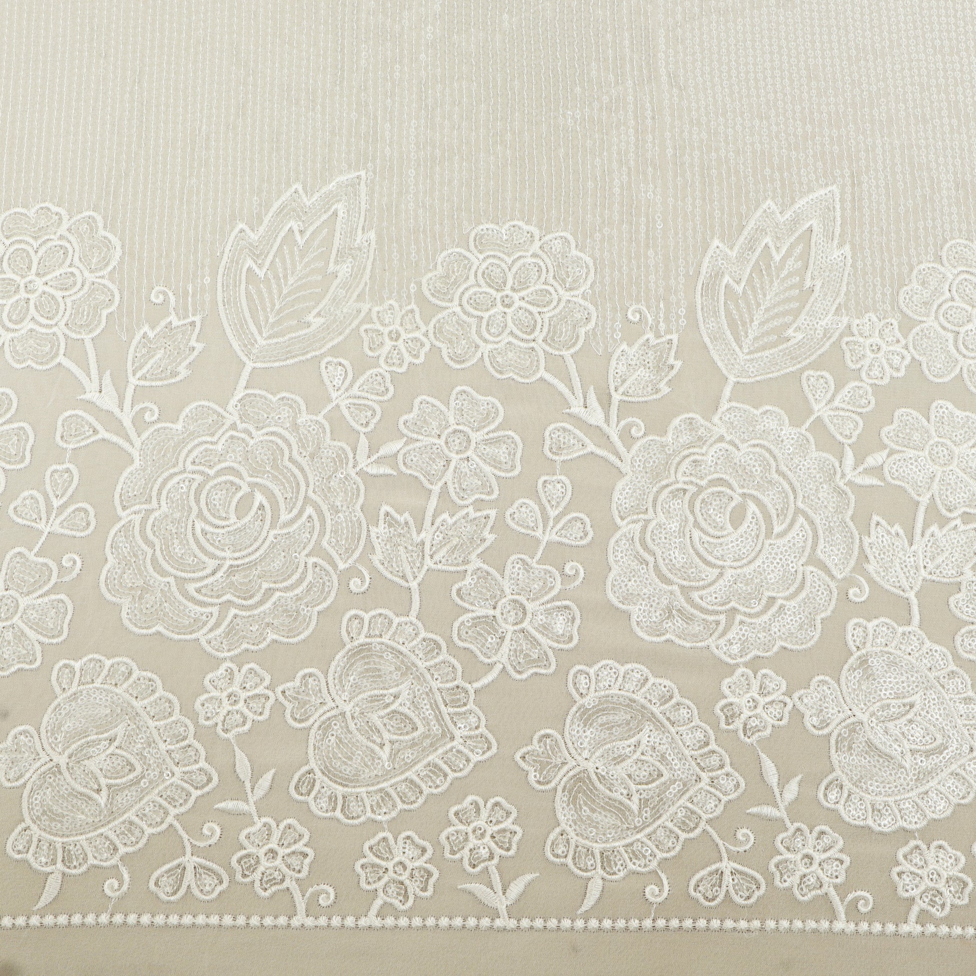 Crafted from high-quality georgette material, this white color embroidery fabric exudes elegance and sophistication. With its intricate embroidery, it adds a touch of luxury to any project. Soft to the touch and lightweight, this fabric is perfect for creating stunning garments and accessories. Elevate your designs with this beautiful fabric.