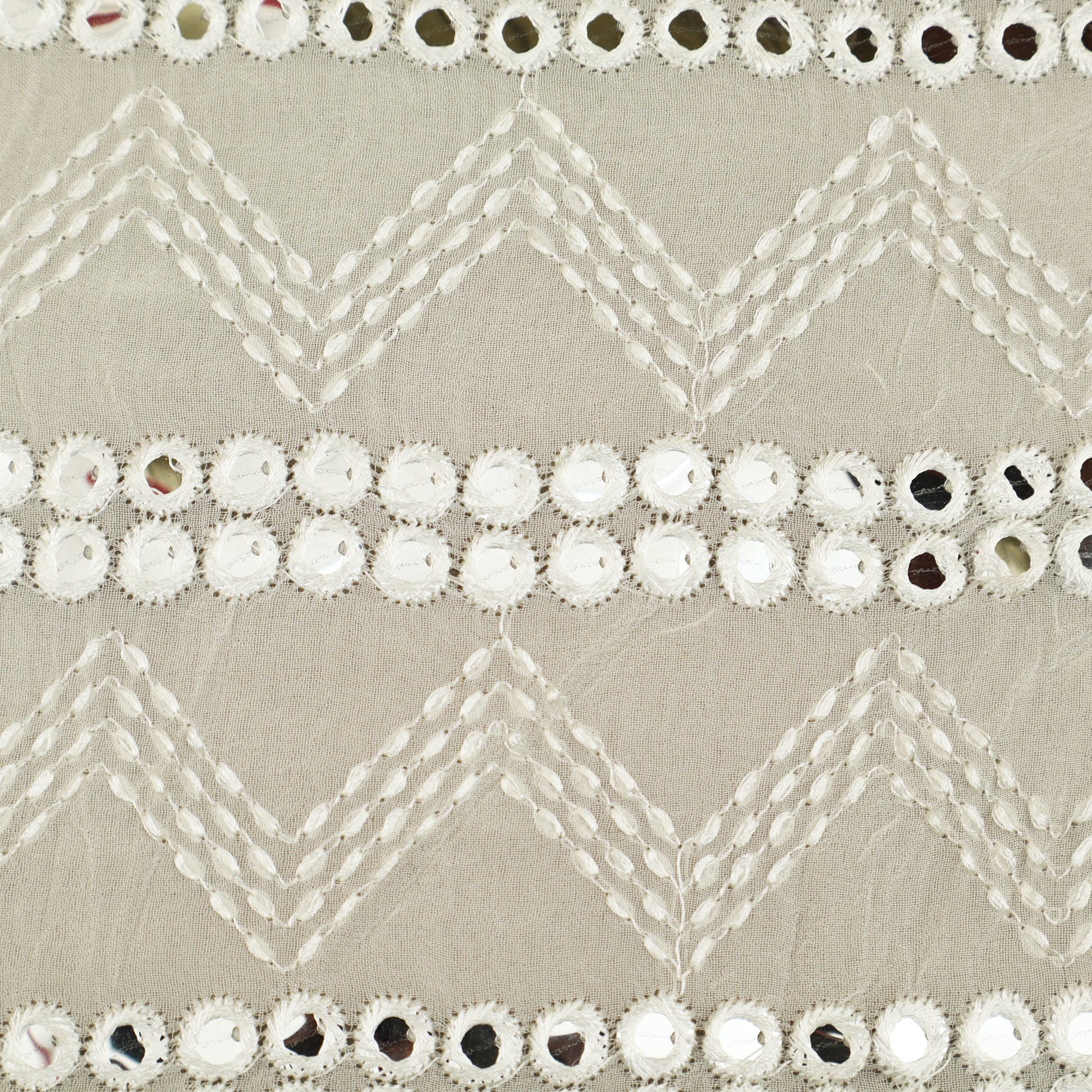 Crafted from high-quality georgette material, this white color embroidery fabric exudes elegance and sophistication. With its intricate embroidery, it adds a touch of luxury to any project. Soft to the touch and lightweight, this fabric is perfect for creating stunning garments and accessories. Elevate your designs with this beautiful fabric.