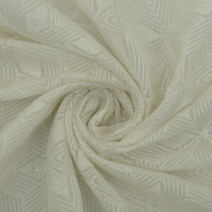 This georgette embroidery fabric boasts a timeless and elegant white color, perfect for creating sophisticated and high-end garments. Made with high-quality materials and intricate embroidery, this fabric is designed to elevate any fashion piece. Its lightweight and sheer texture adds a touch of luxury to any outfit.