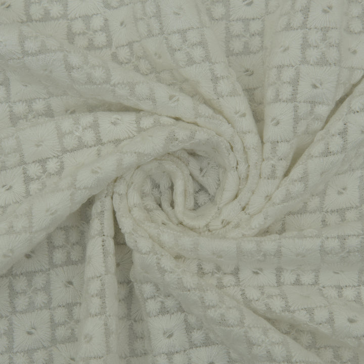 Made from high-quality georgette fabric, this embroidery fabric is perfect for creating stunning and intricate designs. Its lightweight and airy texture provides both comfort and elegance, making it ideal for a wide range of garments and crafts. Add a touch of sophistication to your creations with our white color georgette embroidery fabric.