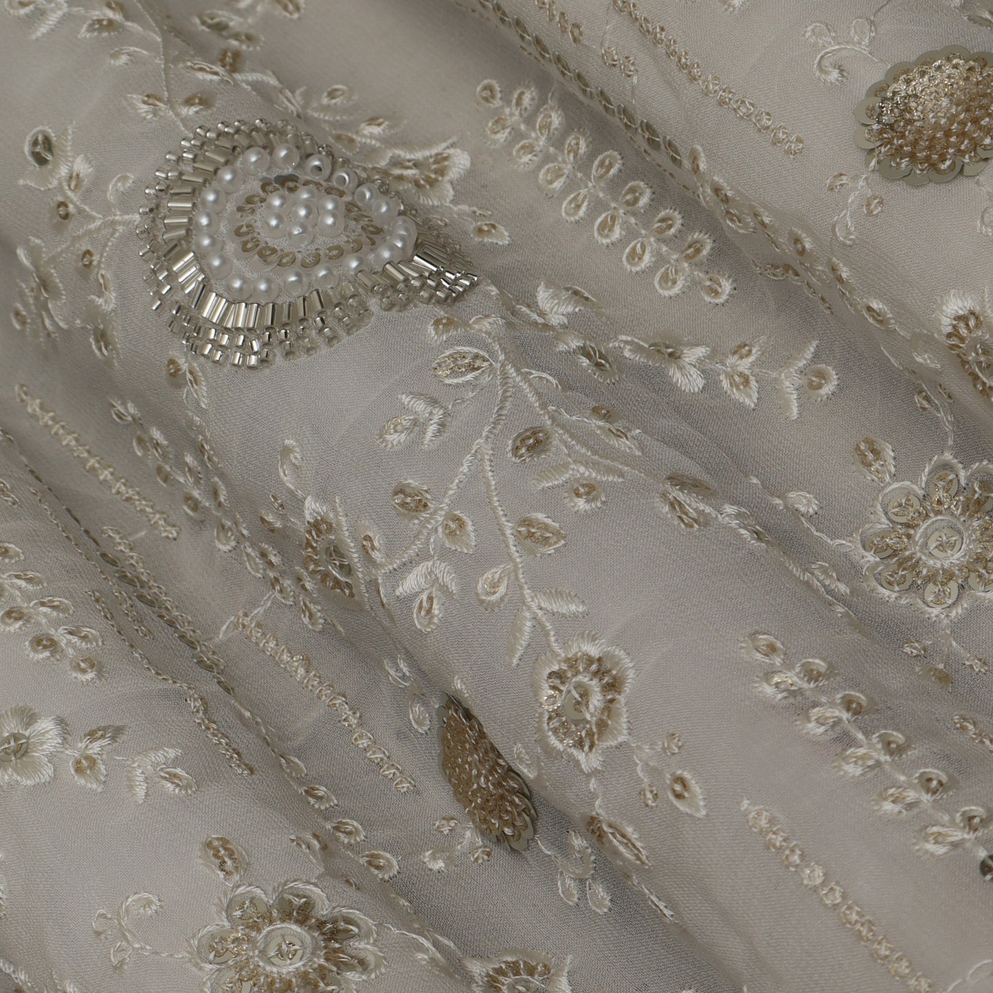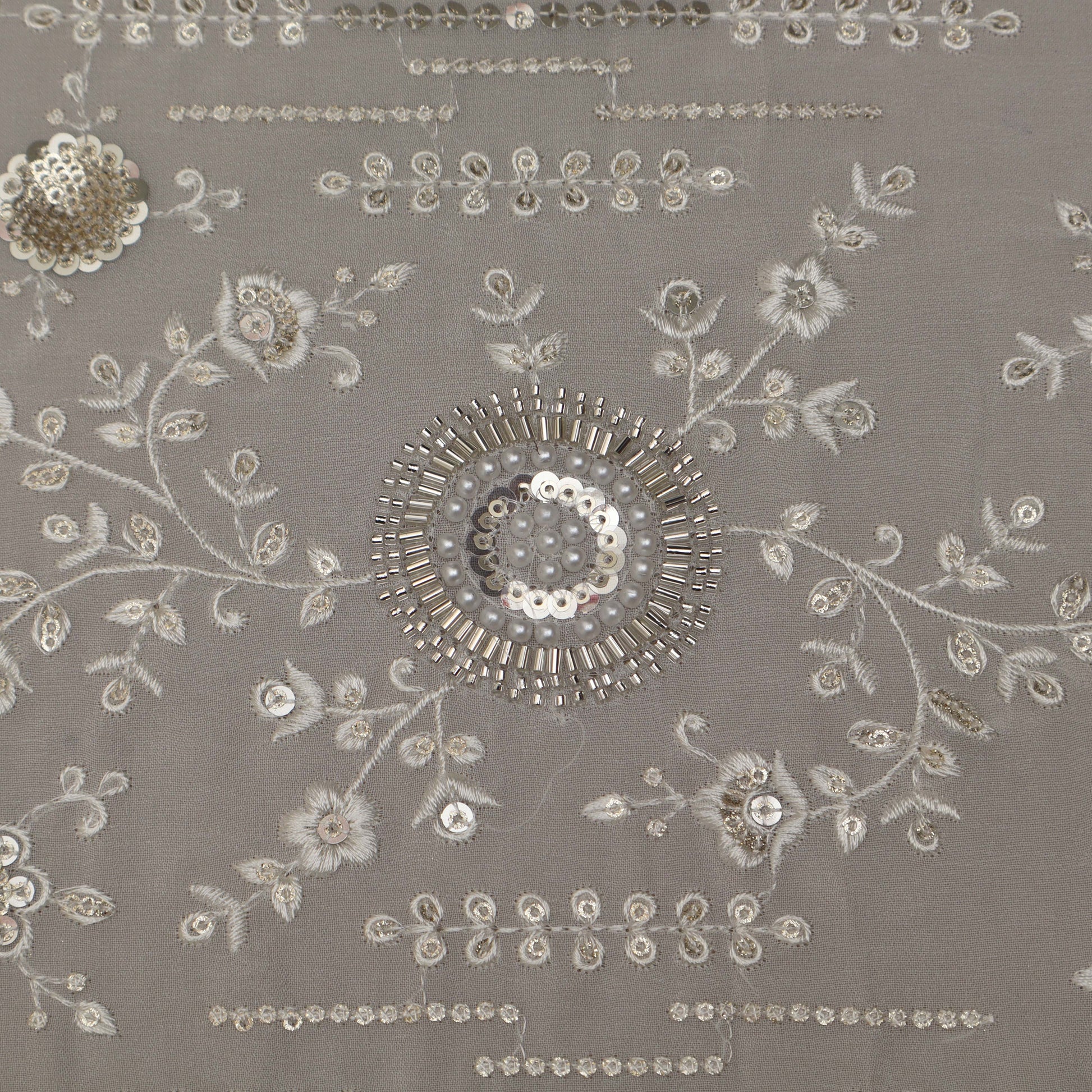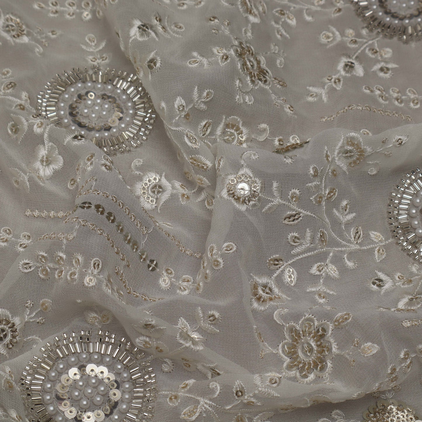 This white georgette embroidery fabric is lightweight, sheer, and delicately woven to ensure a smooth and elegant drape. Perfect for creating flowy and ethereal garments, it adds a touch of sophistication to any outfit. Made from high-quality materials, this fabric is a must-have for any fashion enthusiast.