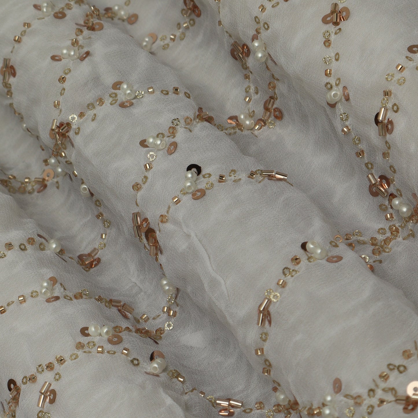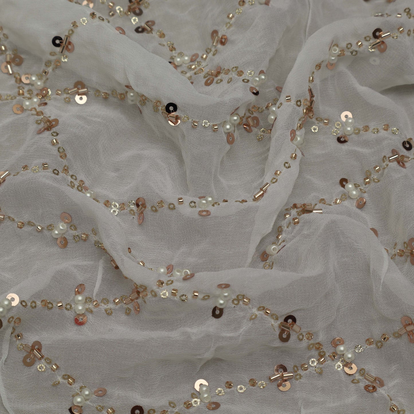This white-colored georgette embroidery fabric is the perfect choice for those looking to add a touch of elegance to their wardrobe. With its lightweight and delicate texture, it is perfect for creating stunning and intricate designs. The beautiful embroidery adds a unique and sophisticated touch to any garment.