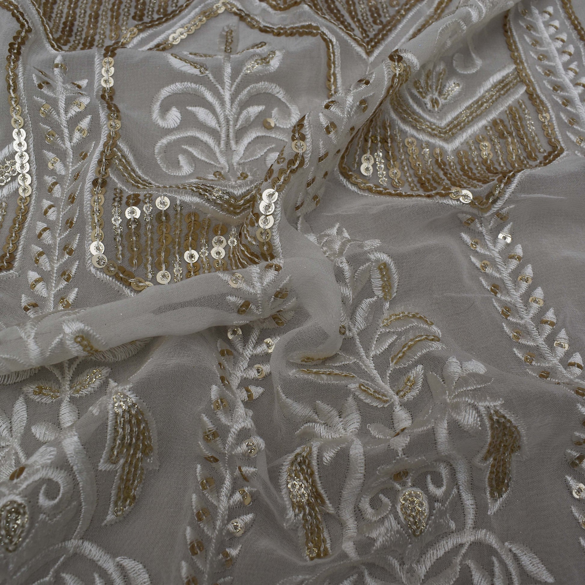 Crafted with expert precision, our White Color Georgette Embroidery Fabric boasts a delicate and intricate design. Made with high-quality materials, this fabric is perfect for creating stunning and elegant garments. Its lightweight and breathable texture make it comfortable to wear, making it a versatile choice for any occasion.