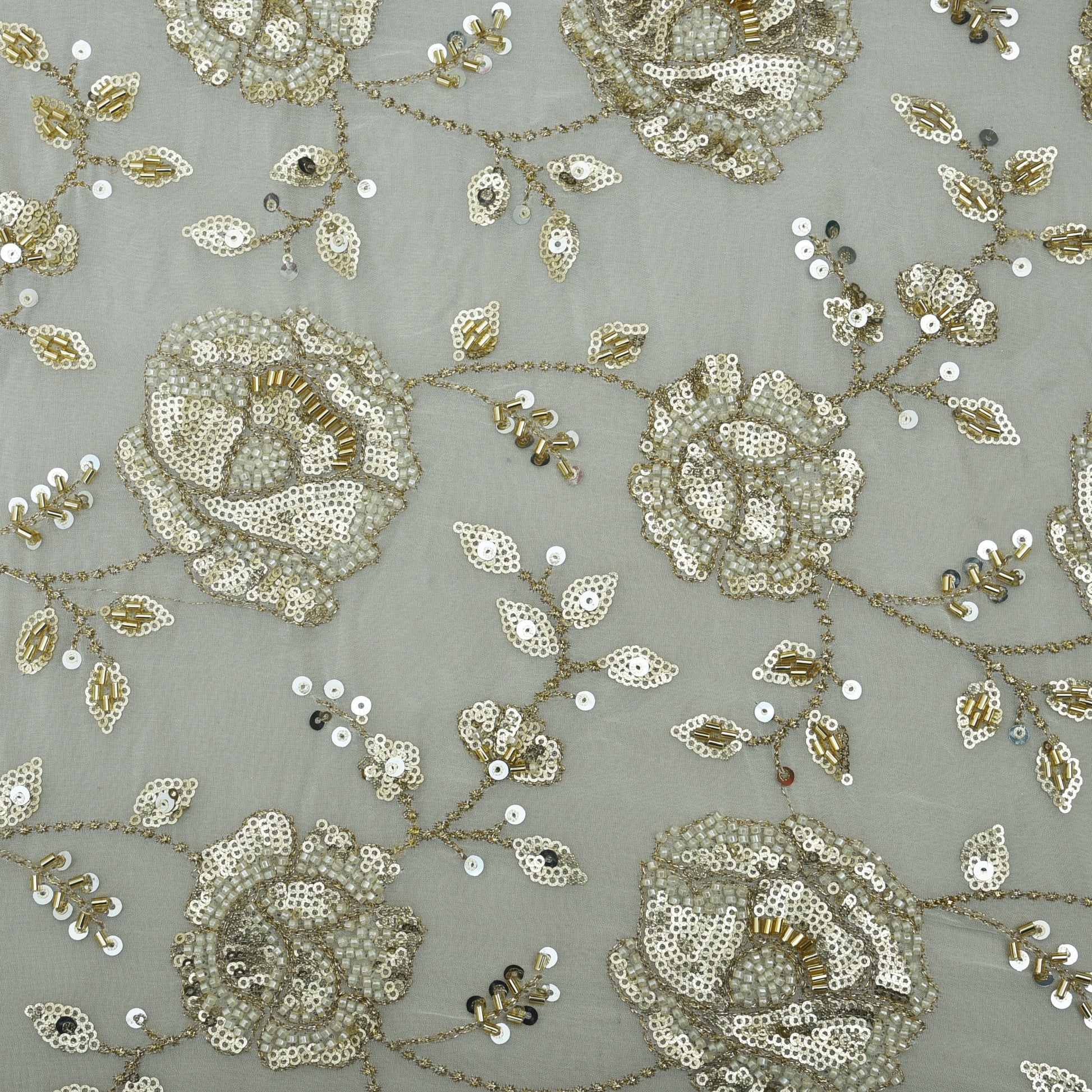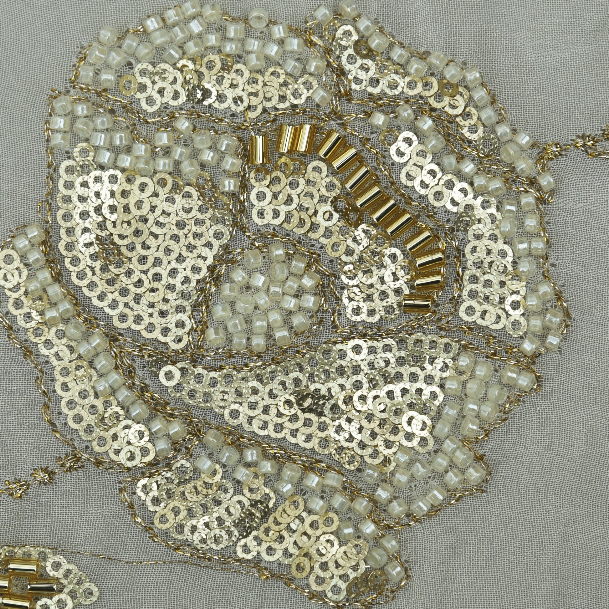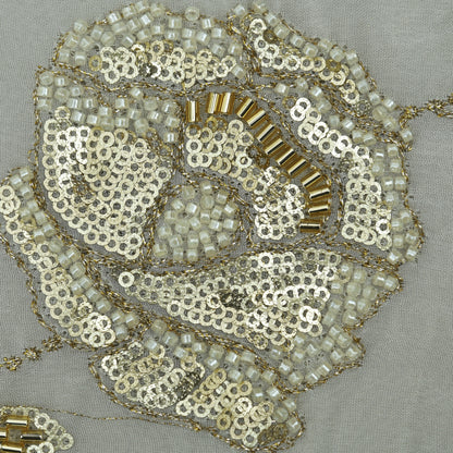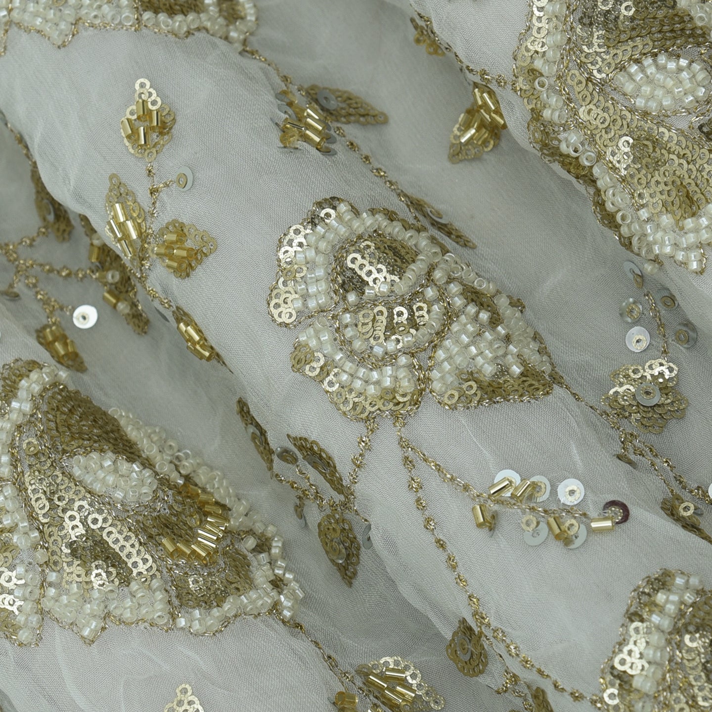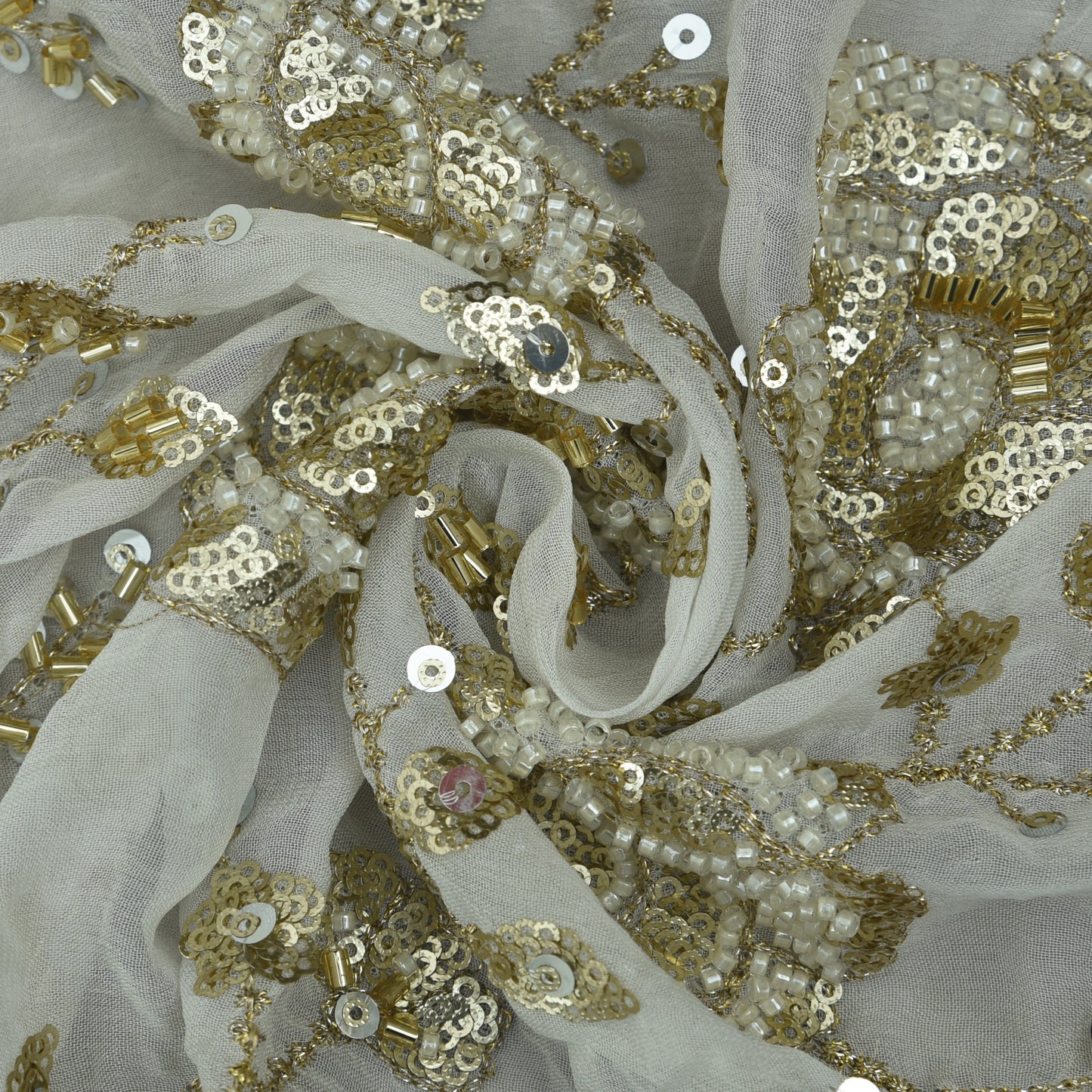 Crafted from high-quality georgette fabric, this white sequins embroidery fabric adds a touch of elegance to any project. Perfect for creating stunning dresses, gowns, and other formal wear, its delicate texture and intricate embellishments make it a must-have for fashion enthusiasts and designers alike.