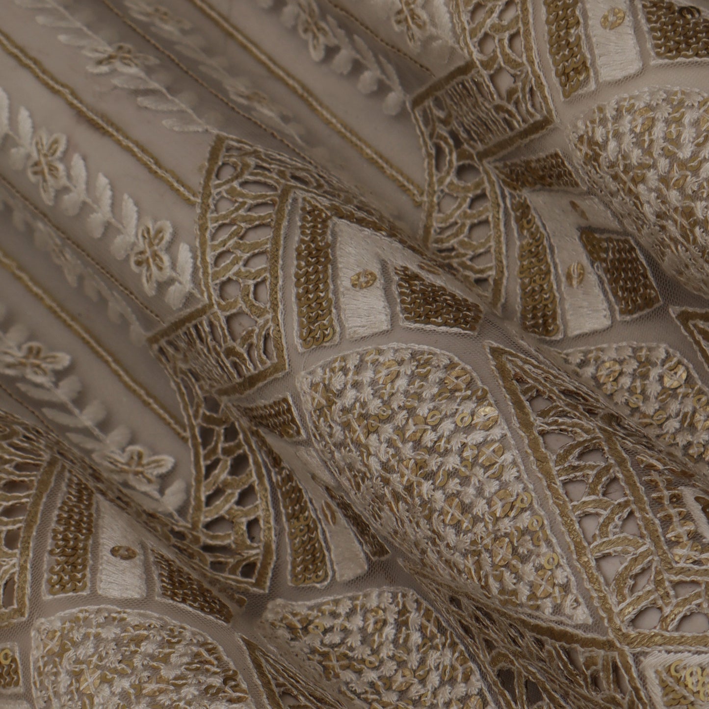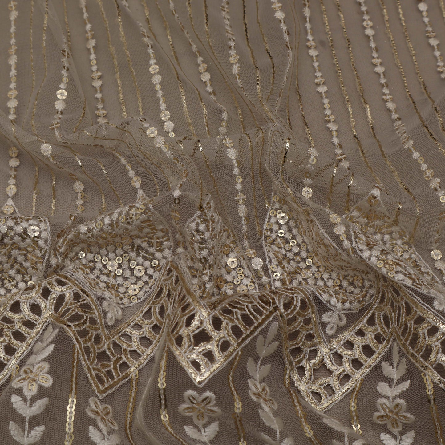 This delicate White Color Net Embroidery Fabric is perfect for creating elegant and intricate designs. The finely woven net provides lightweight and breathable fabric, while the beautiful embroidery adds a touch of sophistication. Ideal for creating stunning garments and home decor pieces.