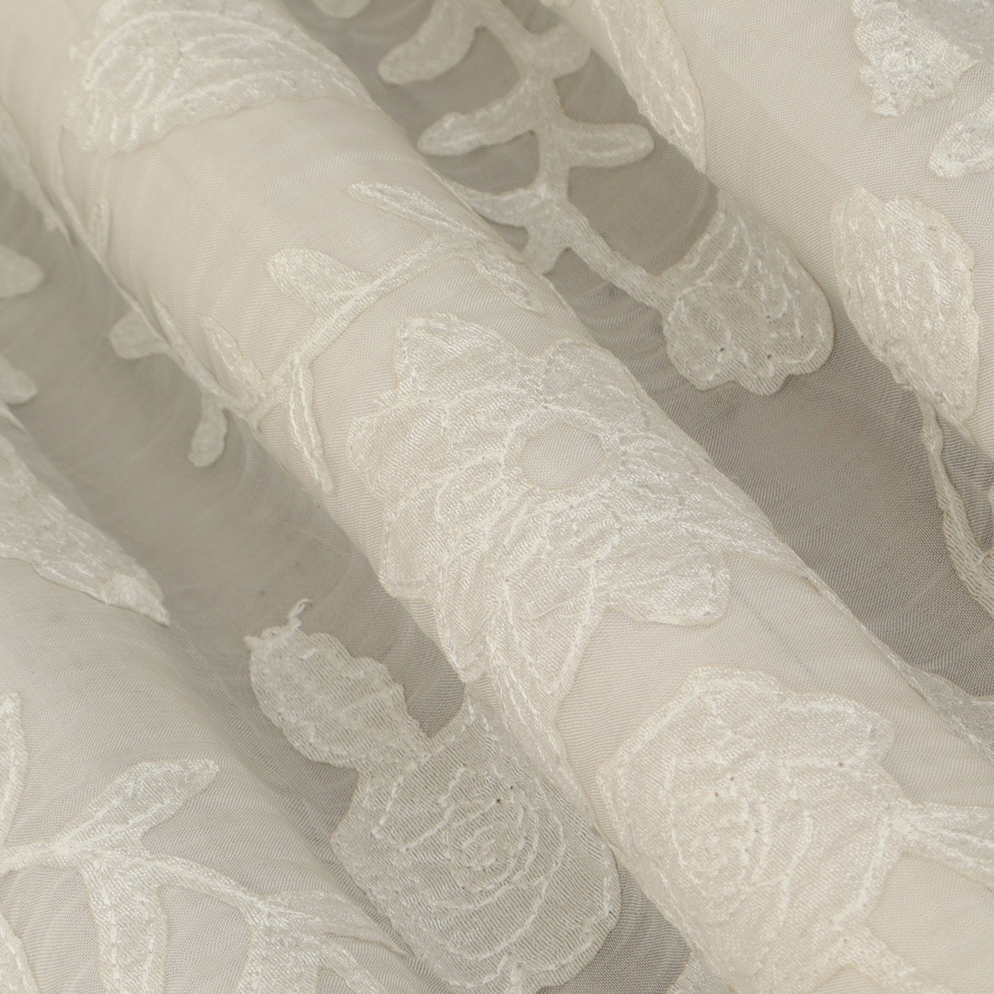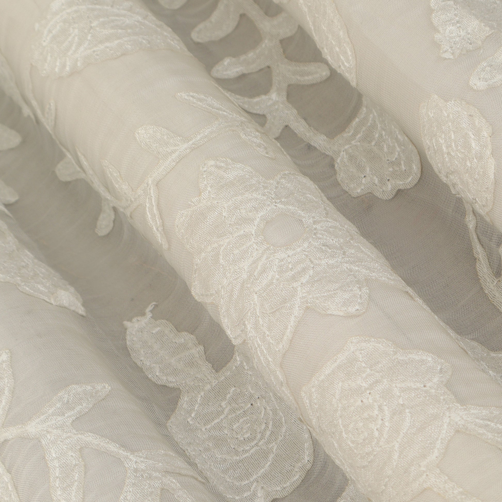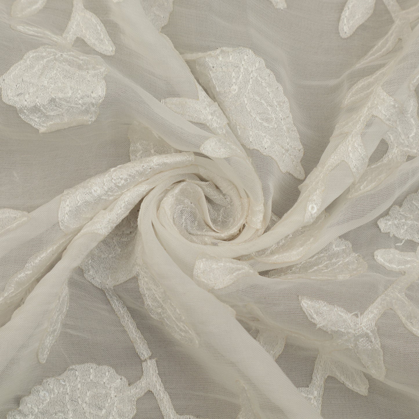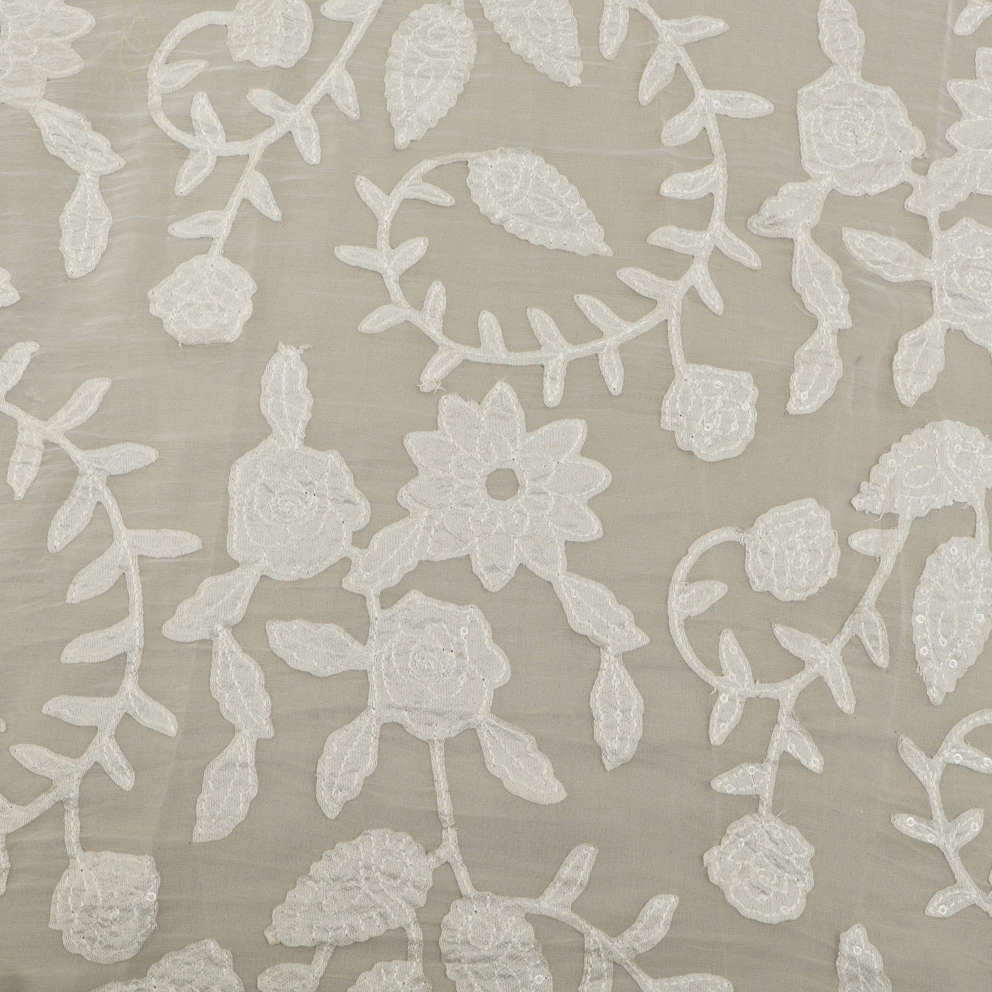 Made from high-quality organza and delicately embroidered, this white fabric adds elegance to any garment. Its translucent nature allows for beautiful layering and its durability ensures long-lasting wear. Perfect for formal occasions, this fabric is a must-have for any fashion enthusiast.