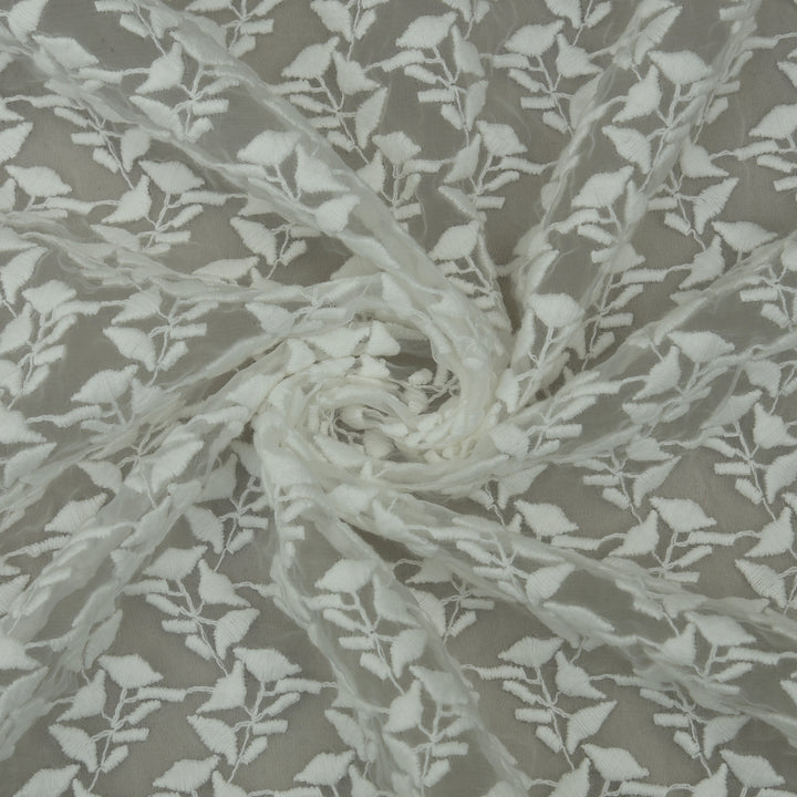 White Color Organza Embroidery Fabric