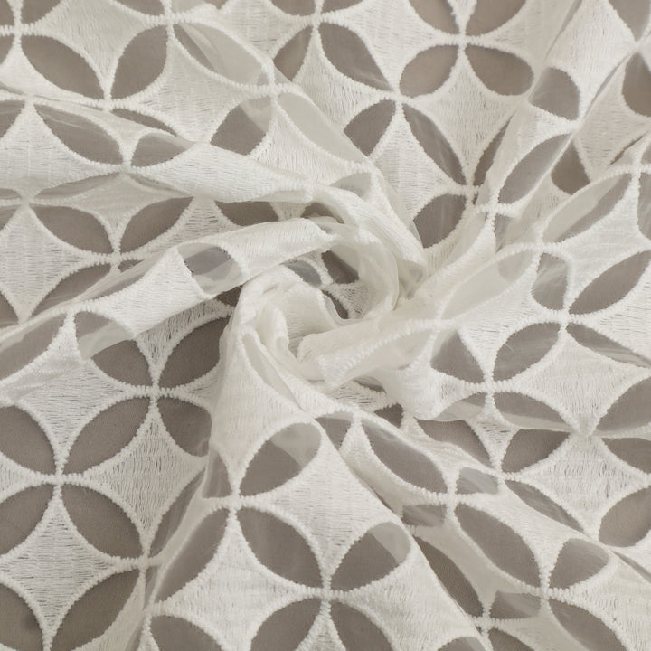 White Color Organza Embroidery Fabric Fabric