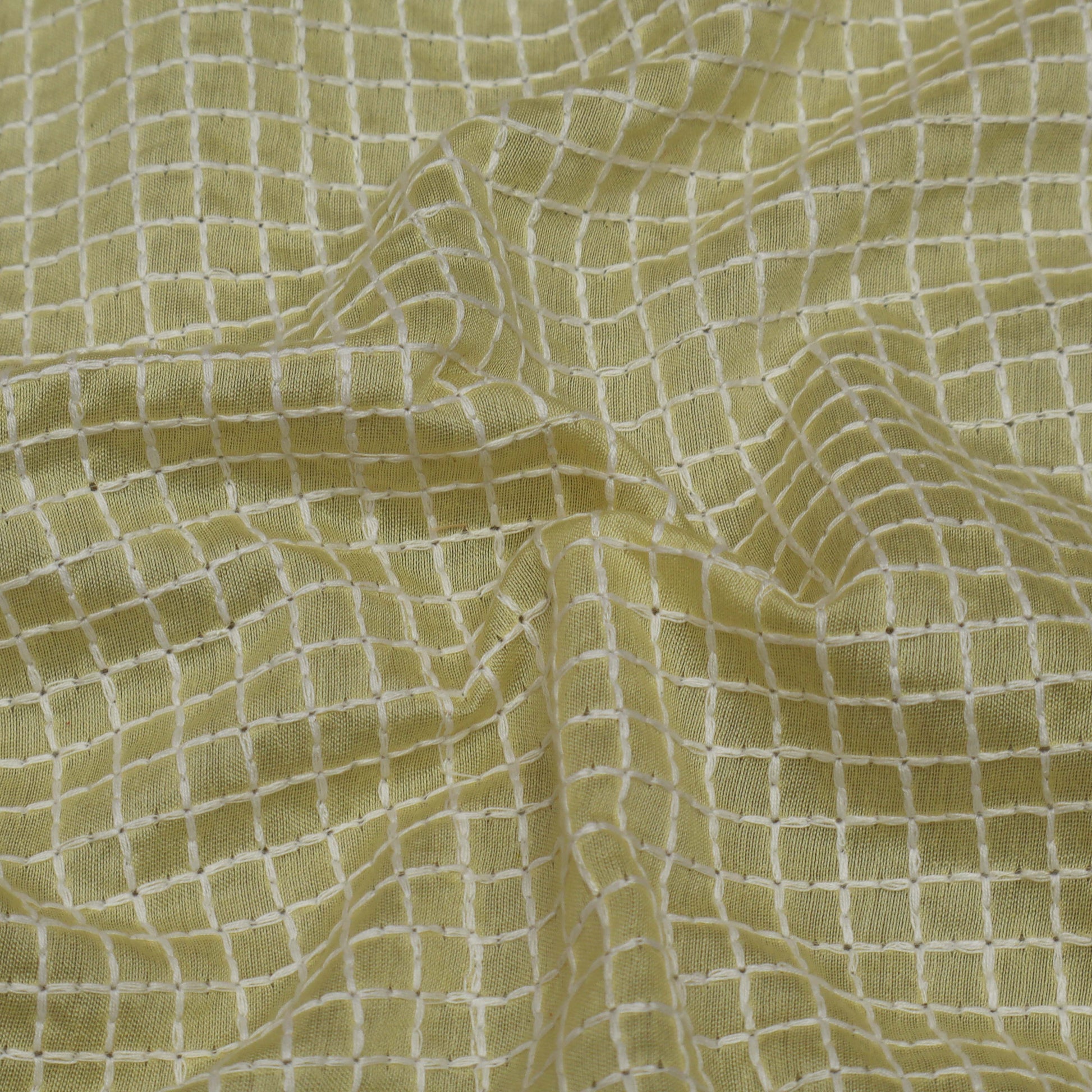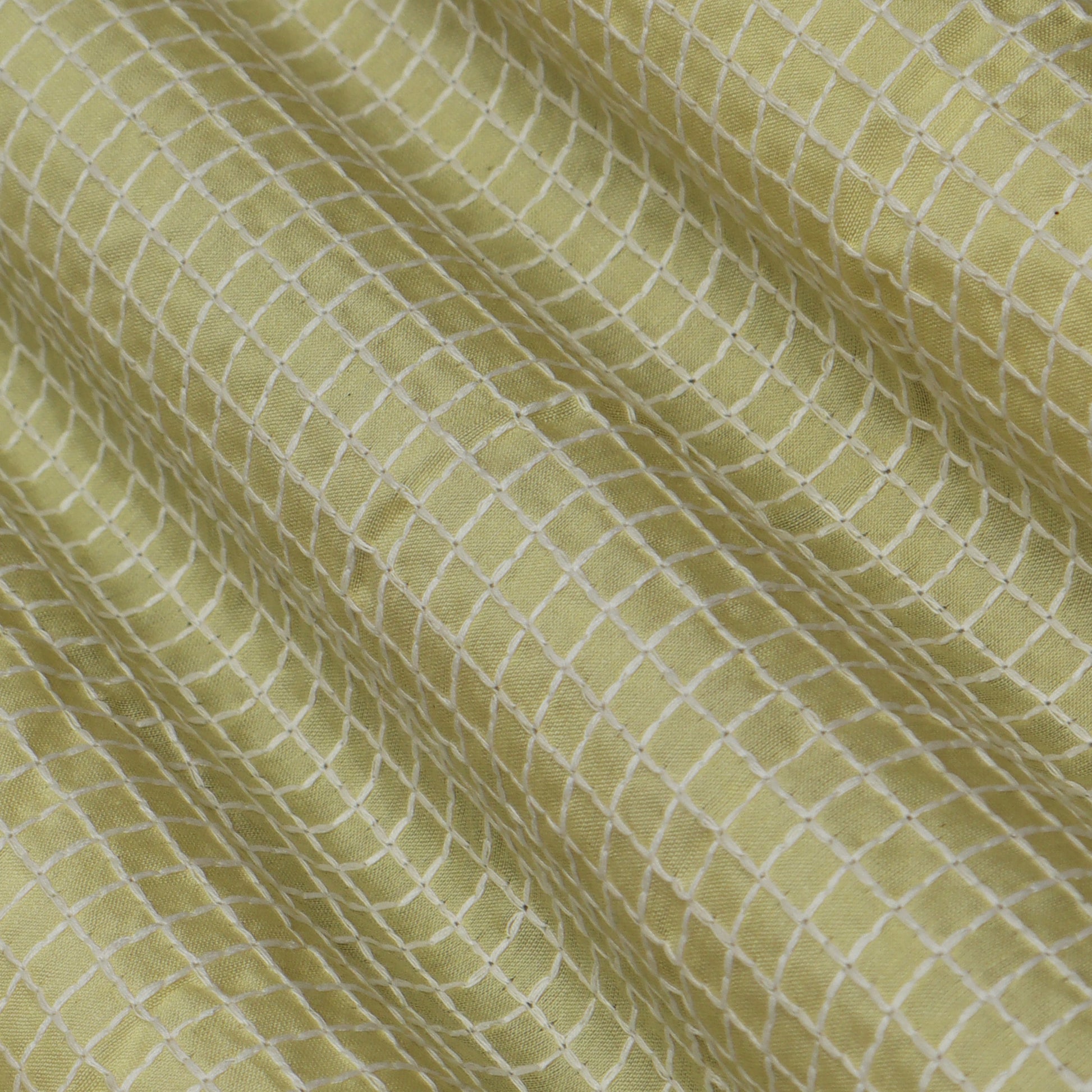 Yellow Color Chanderi Check Embroidery Fabric