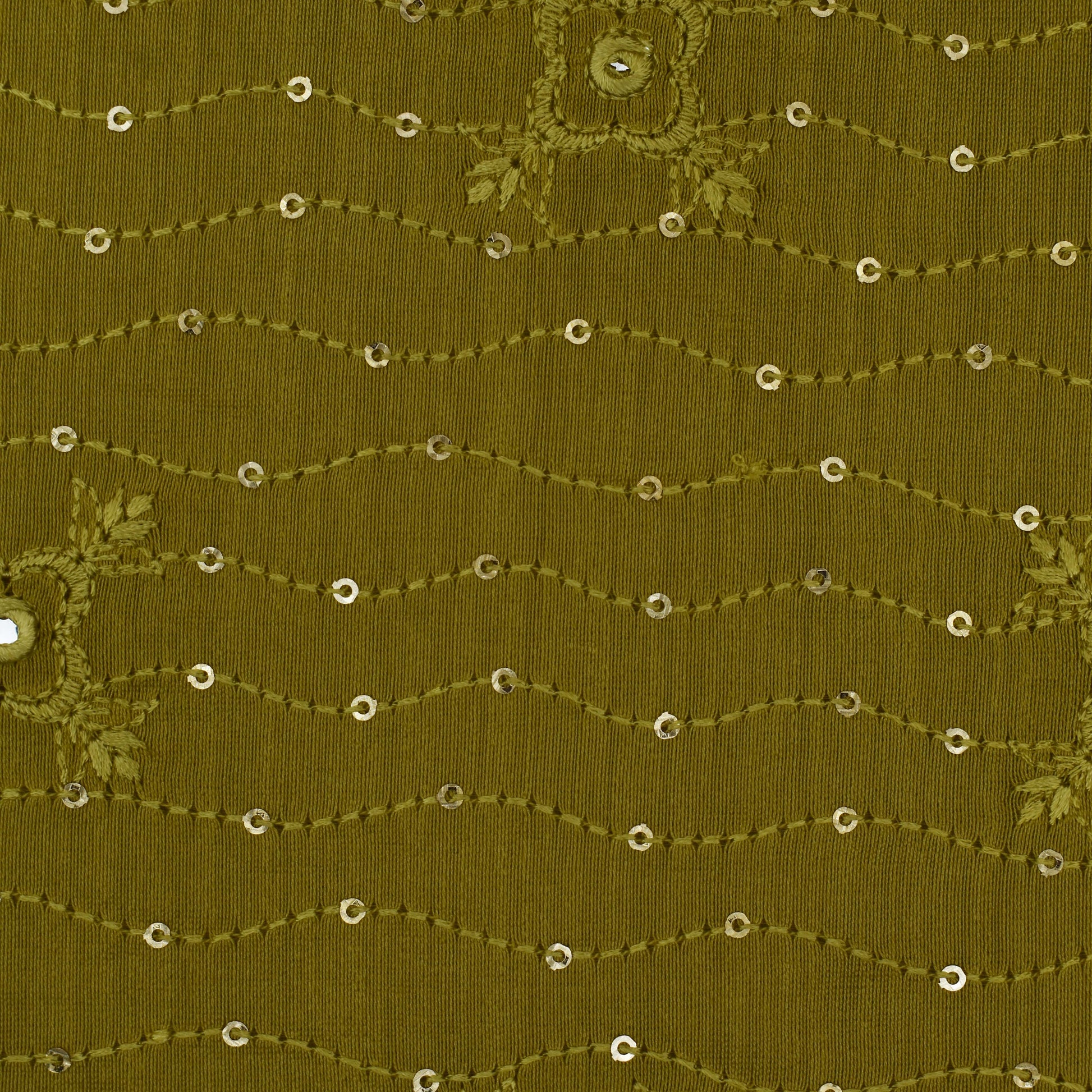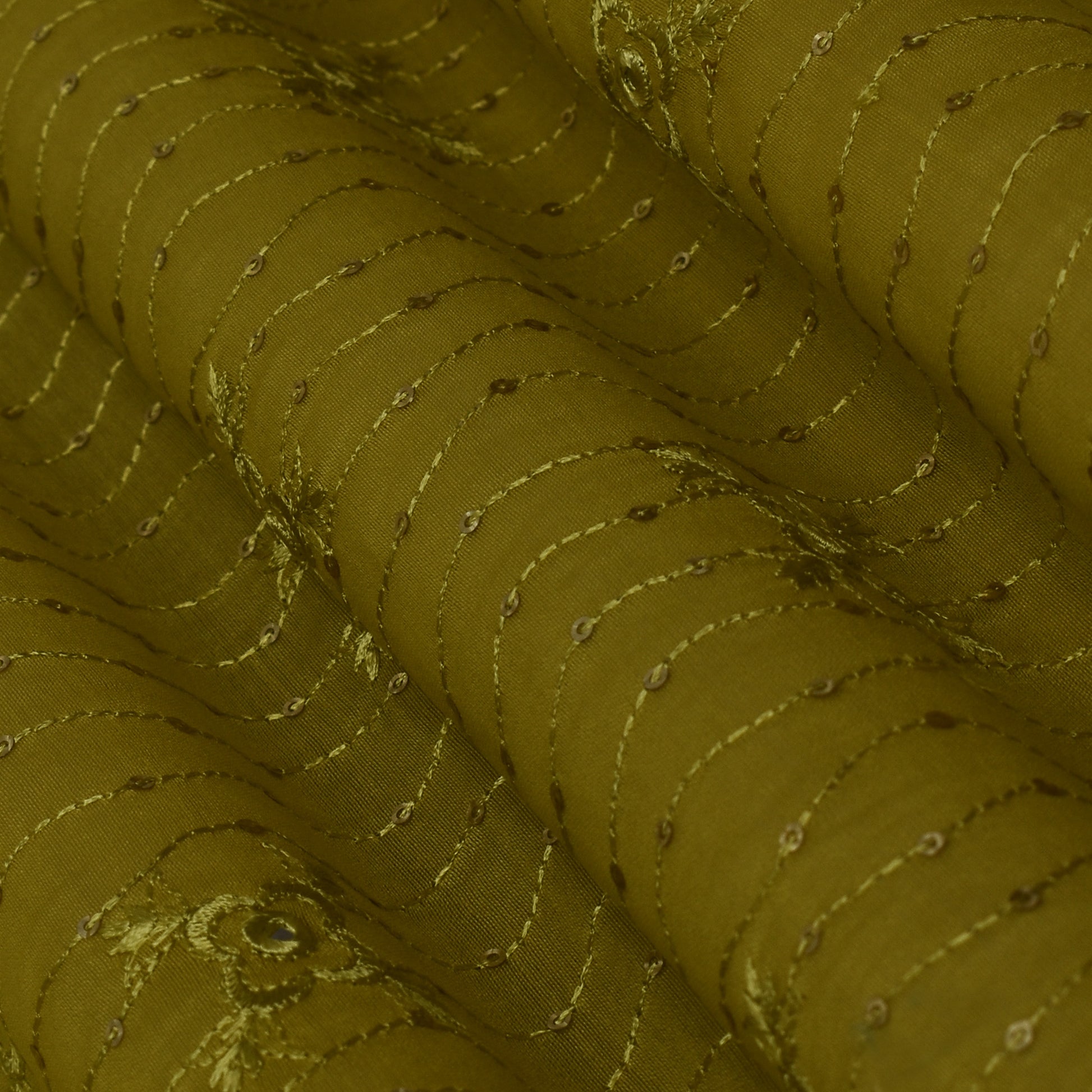 This yellow chanderi embroidery fabric boasts intricate designs and vibrant color. Made from high-quality materials, it offers a soft and luxurious feel. Elevate any project with this eye-catching fabric that adds a touch of elegance and sophistication. Perfect for creating stunning clothing, home decor, and more.