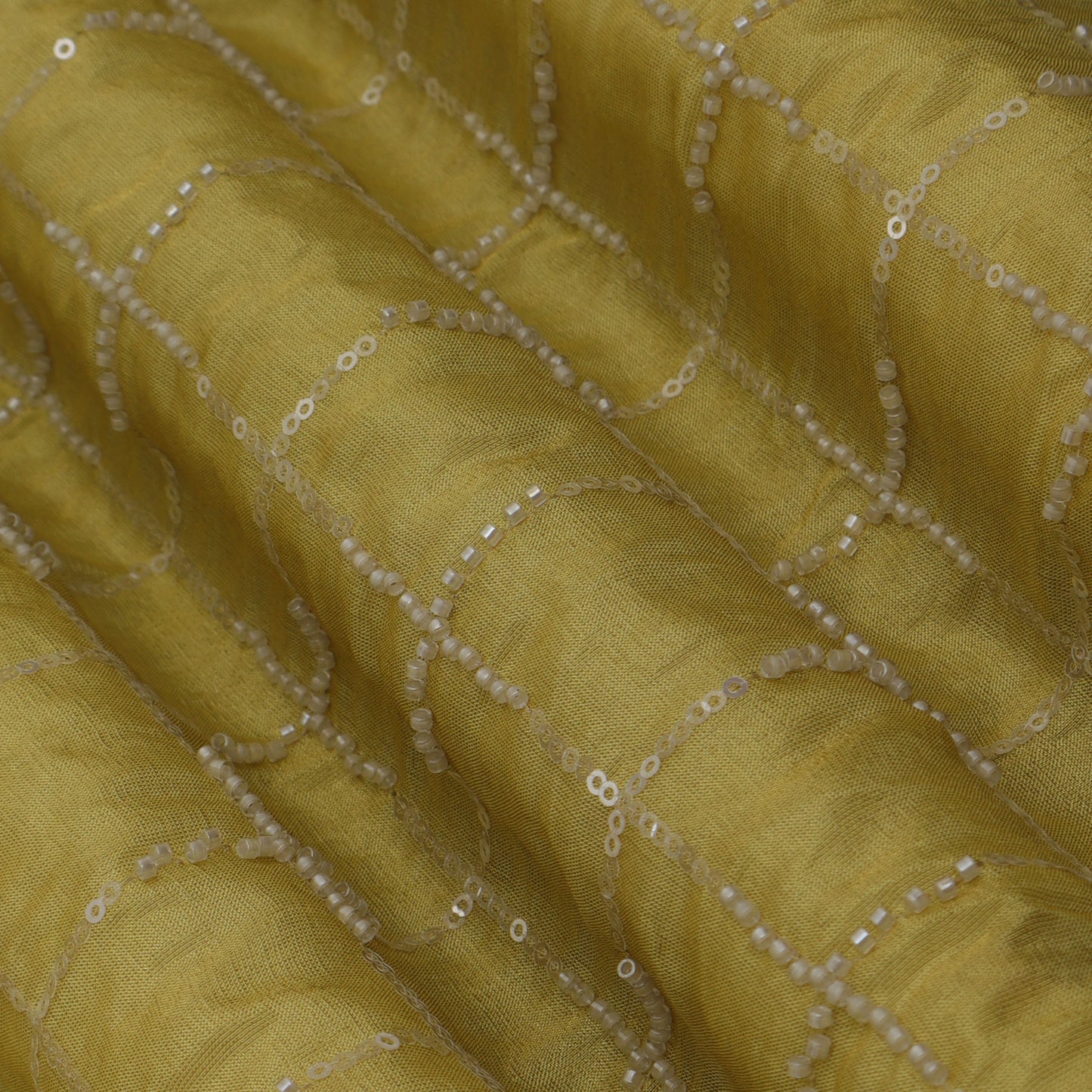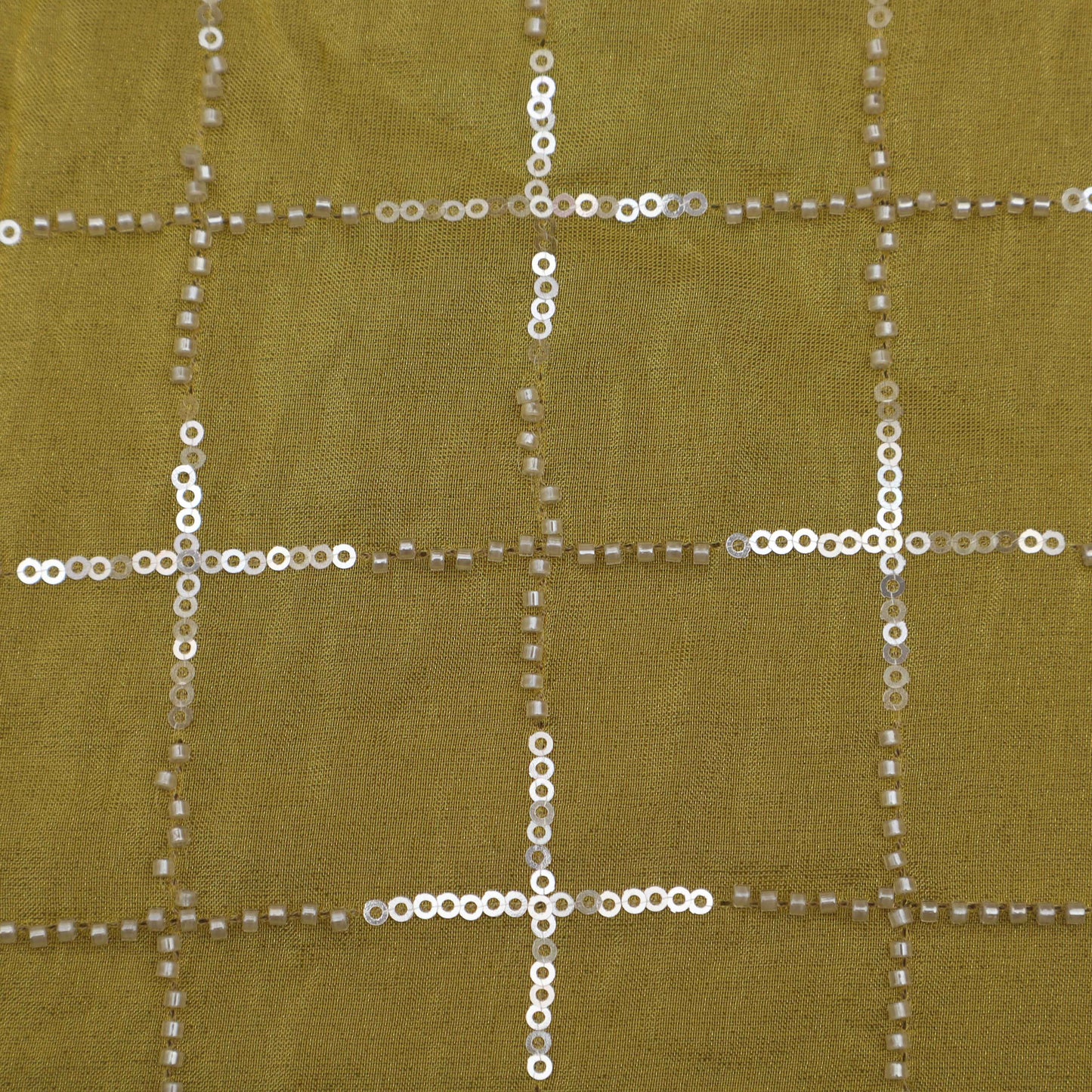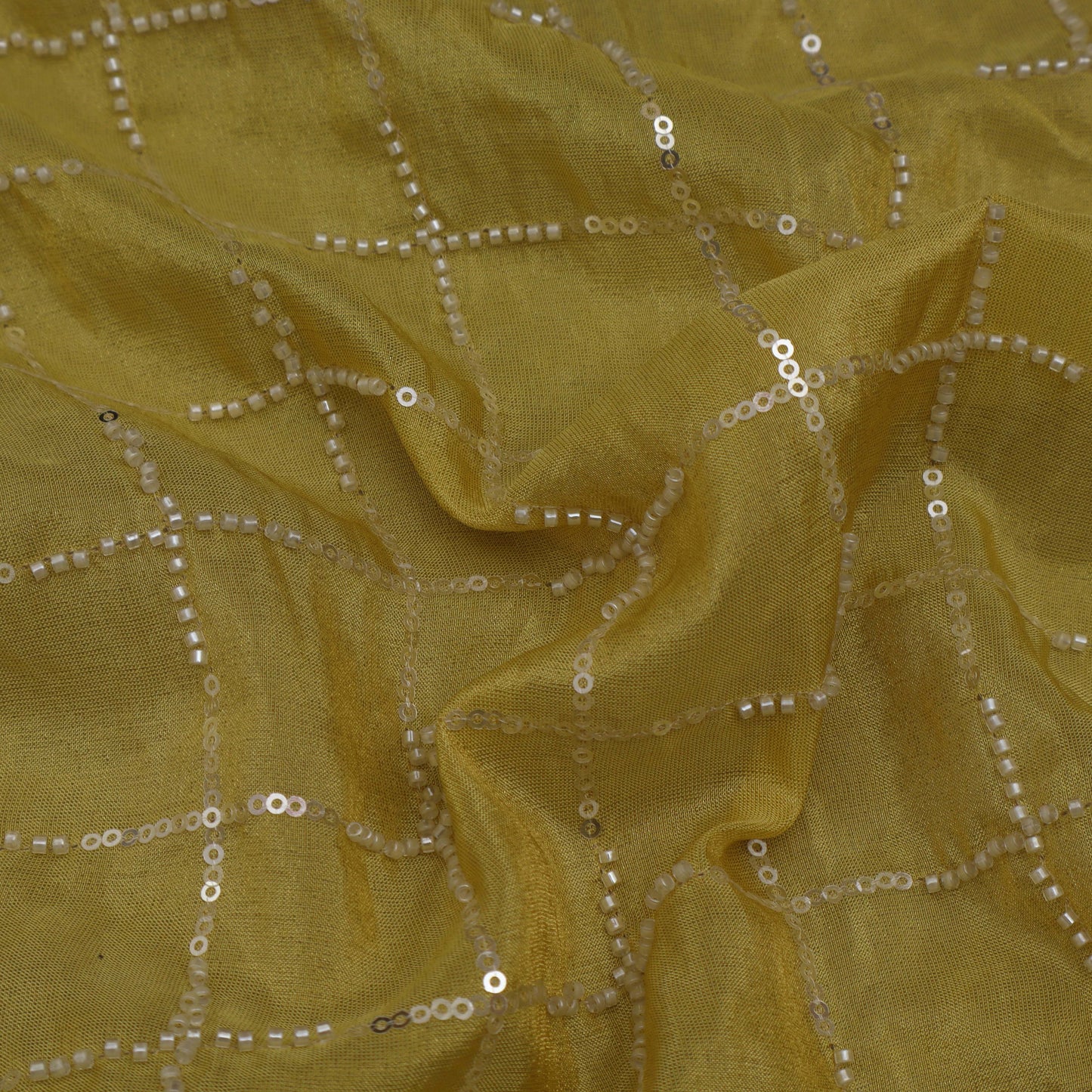 This Yellow Color Tissue Sequins Embroidery Fabric is a high-quality fabric that features stunning sequin embroidery. The vibrant yellow color adds a touch of elegance to any project or garment. Made with precision and attention to detail, this fabric is perfect for creating eye-catching designs and adding a pop of color to any wardrobe.