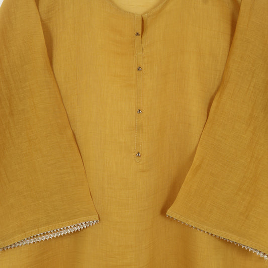 Yellow Color Cotton Printed Border Embroidery Fabric