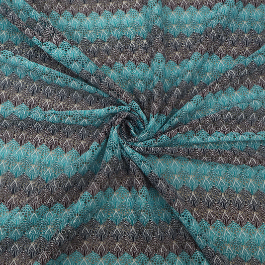 Nevy Blue Crepe Hydra Print Mukaish Fabric