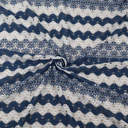 White & Blue Zig Zag Pattern Crosia Fabric