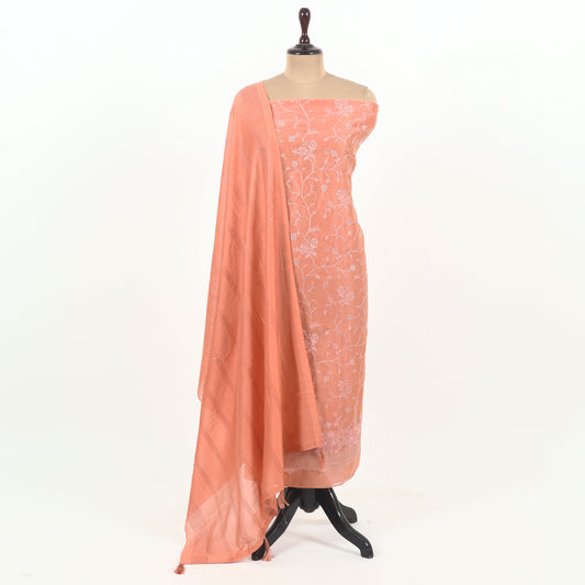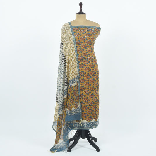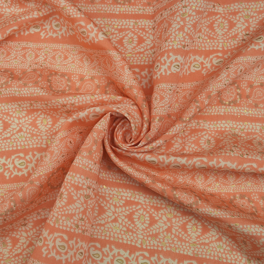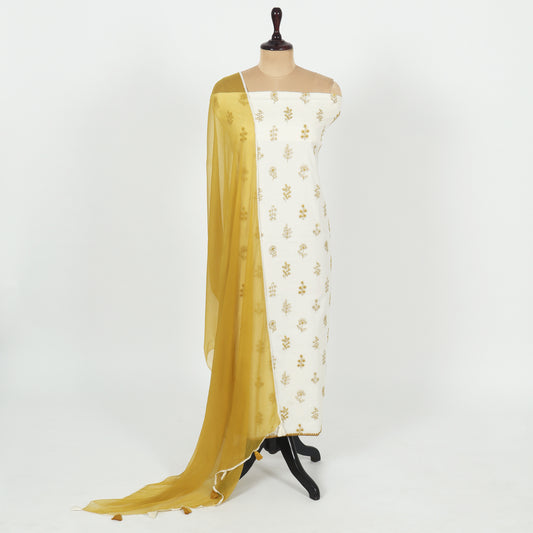 Mustard Color Chanderi Stripe Embroidery Fabric