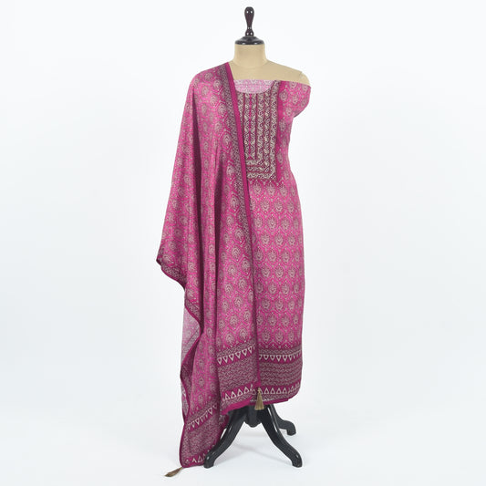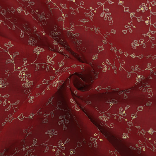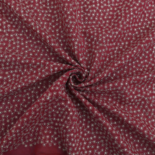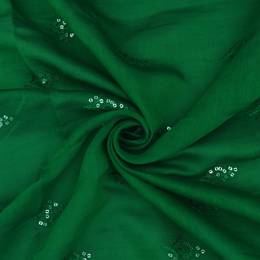 Bottle Green Color Chanderi Booti Embroidery Fabric