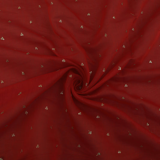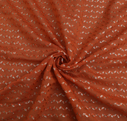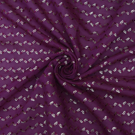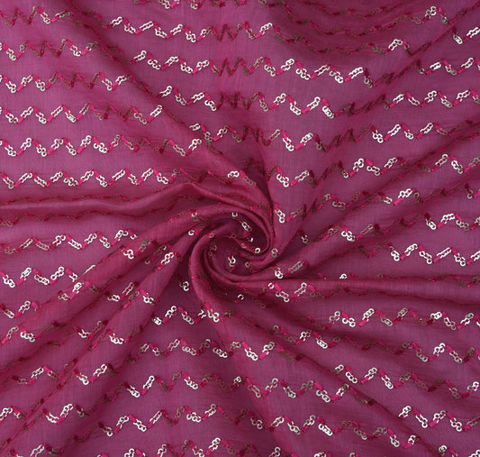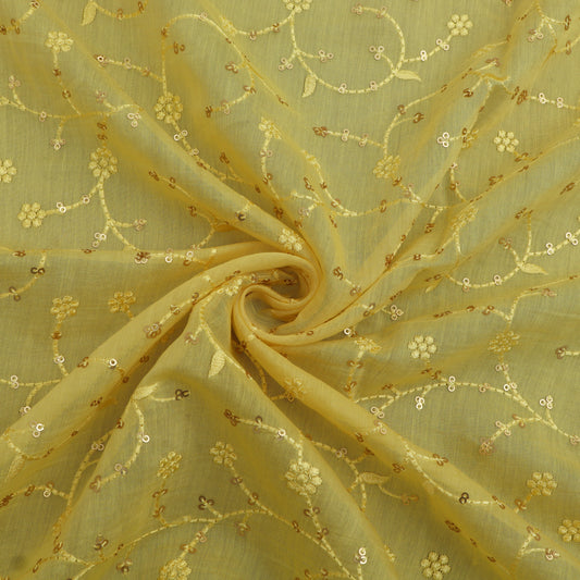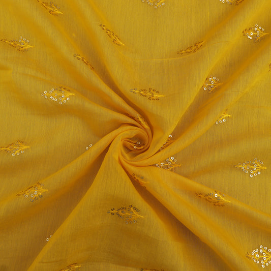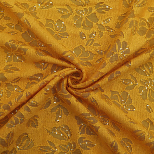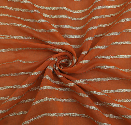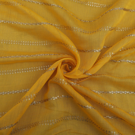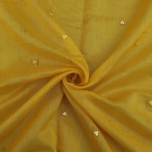 Mustard Color Chanderi Stripe Embroidery Fabric