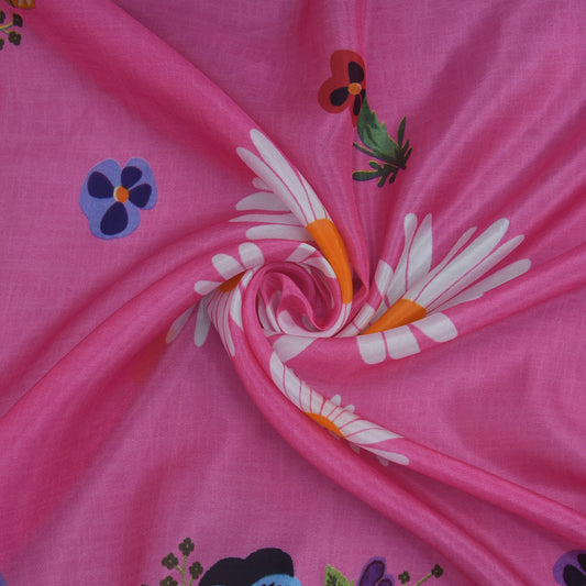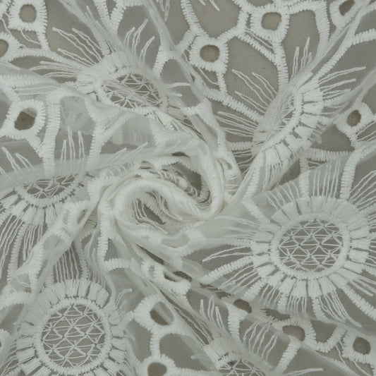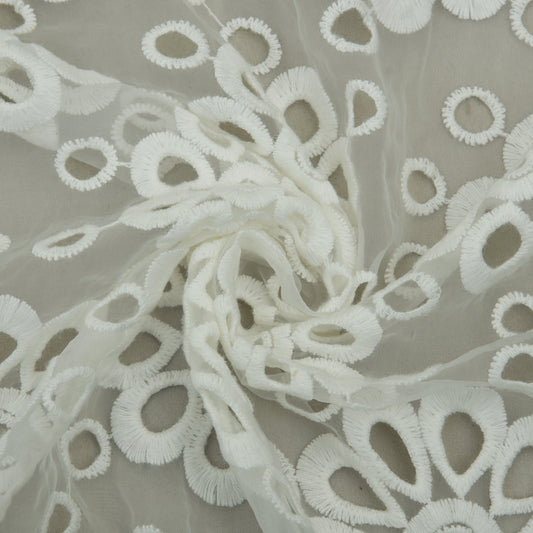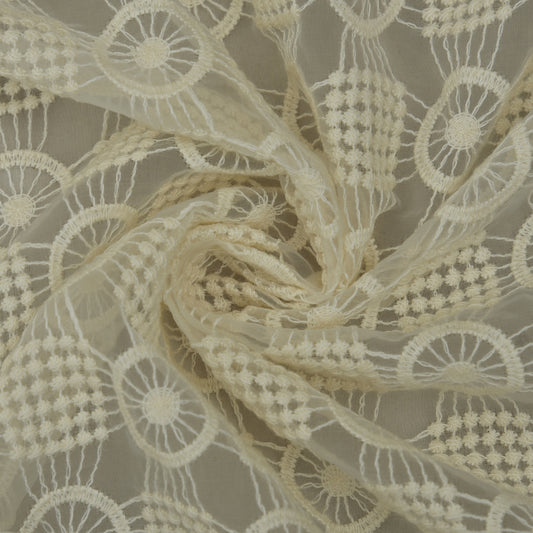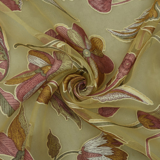Cream Color Floral Tissue Foil Organza Print Fabric