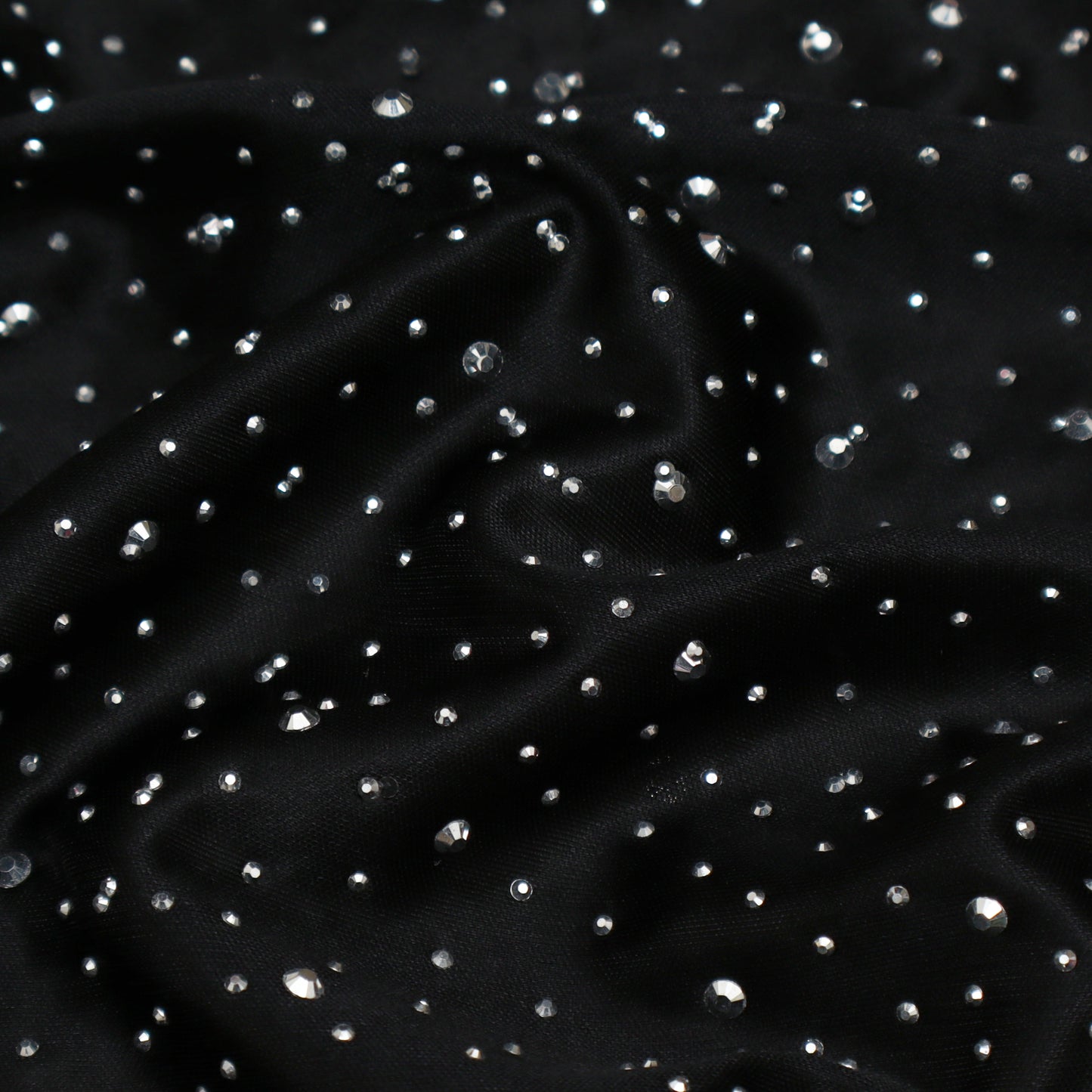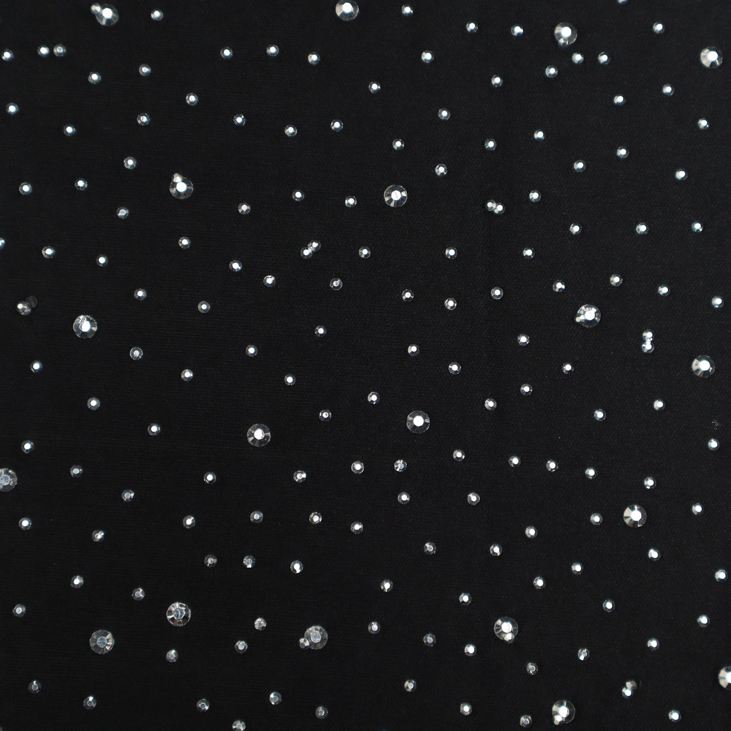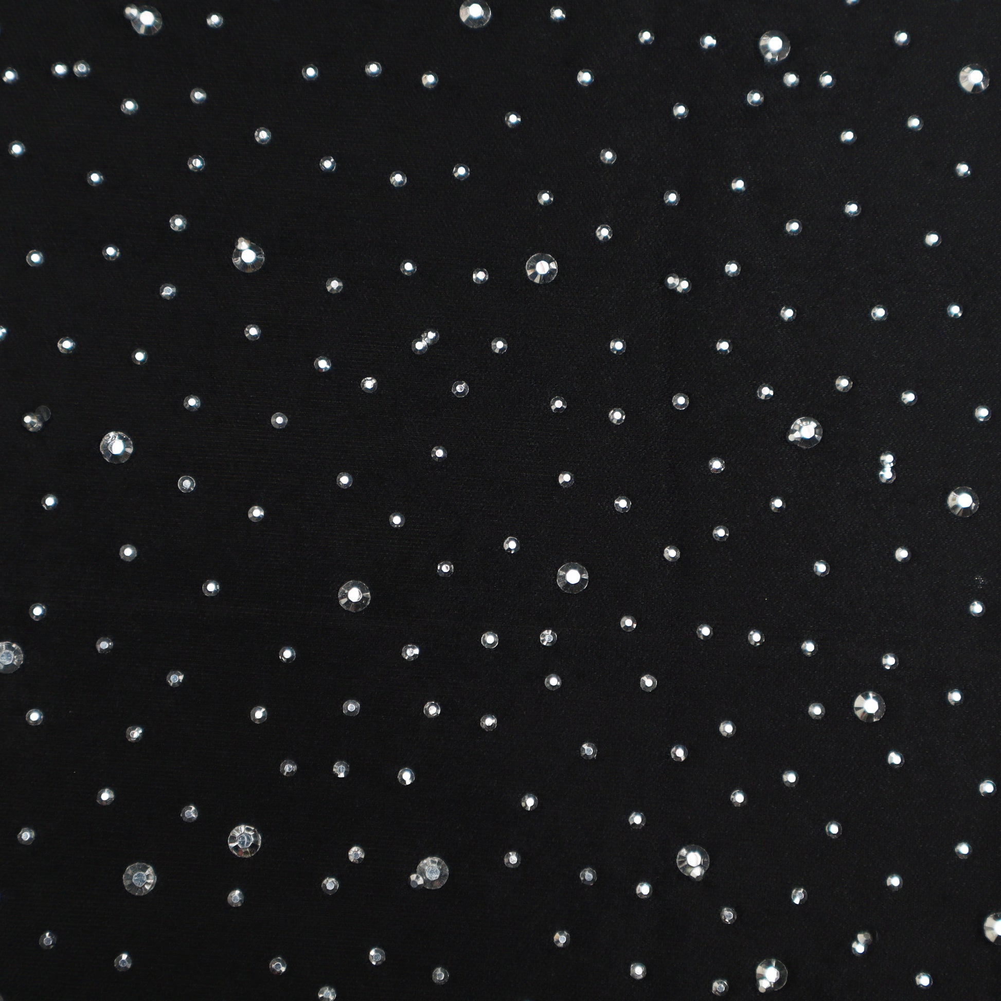 This black color satin glitter fabric is the perfect addition to any craft or sewing project. Made with a luxurious satin material and infused with sparkling glitter, it adds a touch of elegance and glamour to any design. The sleek black color also provides versatility and pairs well with any color scheme.